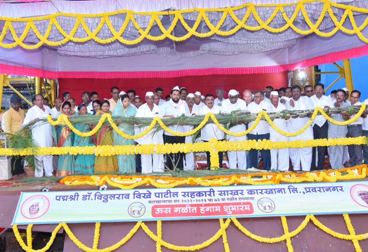 पद्मश्री डॉ.विखे पाटील सहकारी साखर कारखान्याच्या ७३ व्या गळीत हंगामाची सुरूवात खासदार विखे पाटील यांच्या उपस्थितीत करण्यात आली. माजी चेअरमन डॉ.भास्करराव खर्डे पाटील यांच्या अध्यक्षतेखाली झालेल्या या कार्यक्रमास जिल्हा परिषदेच्या माजी अध्यक्षा शालिनीताई विखे पाटील, गणेश कारखान्याचे चेअरमन मुकूंद सदाफळ, व्हाईस चेअरमन विश्वास कडू, प्रवरा बॅकेचे चेअरमन अशोक म्हसे, ट्रक्स सोसायटीचे चेअरमन नंदू राठी, चेअरमन गिता थेटे, भाजपाचे तालुका अध्यक्ष ज्ञानेश्वर गोंदकर यांच्यासह ऊस उत्पादक शेतकरी, सर्व संचालक आधिकारी, कामगार याप्रसंगी उपस्थित होते.
