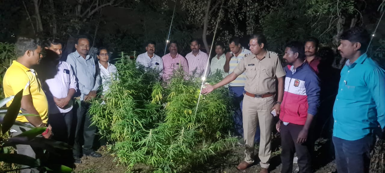 स्थानिक गुन्हे शाखेचे पोलीस निरीक्षक अनिल कटके यांना गुप्तबातमीदारा मार्फत माहिती मिळाली की, मुंगूसवाडे शिवारातील हॉटेल ओमकारचे बाजुस, ता.पाथर्डी येथे महादेव खेडकर याने त्याच्या मालकीचे शेतात घराच्या मागे गांजा वनस्पीतीची झाडे लावलेली आहेत. अशी खात्रीशीर माहिती मिळाल्याने कटके यांनी पथकातील अधिकारी व पाथर्डी पोलीस स्टेशनचे पोलीस निरीक्षक सुहास चव्हाण, सहाय्यक पोलीस निरीक्षक कायंदे, वाघ आणि स्थानिक गुन्हे शाखेचे पथक मुंगूसवाडे शिवारात पायी चालत गेली व हॉटेलच्या बाजूस असलेल्या शेतातील घराच्या पाठीमागे छापा घालून शेतामधून ३६ हजार रुपये किंमतीची ४ किलो ५०० ग्रॅम वजनाची गांजाची लहान मोठी ५५ हिरवी झाडे मिळून आल्याने कारवाई करुन जप्त केली.