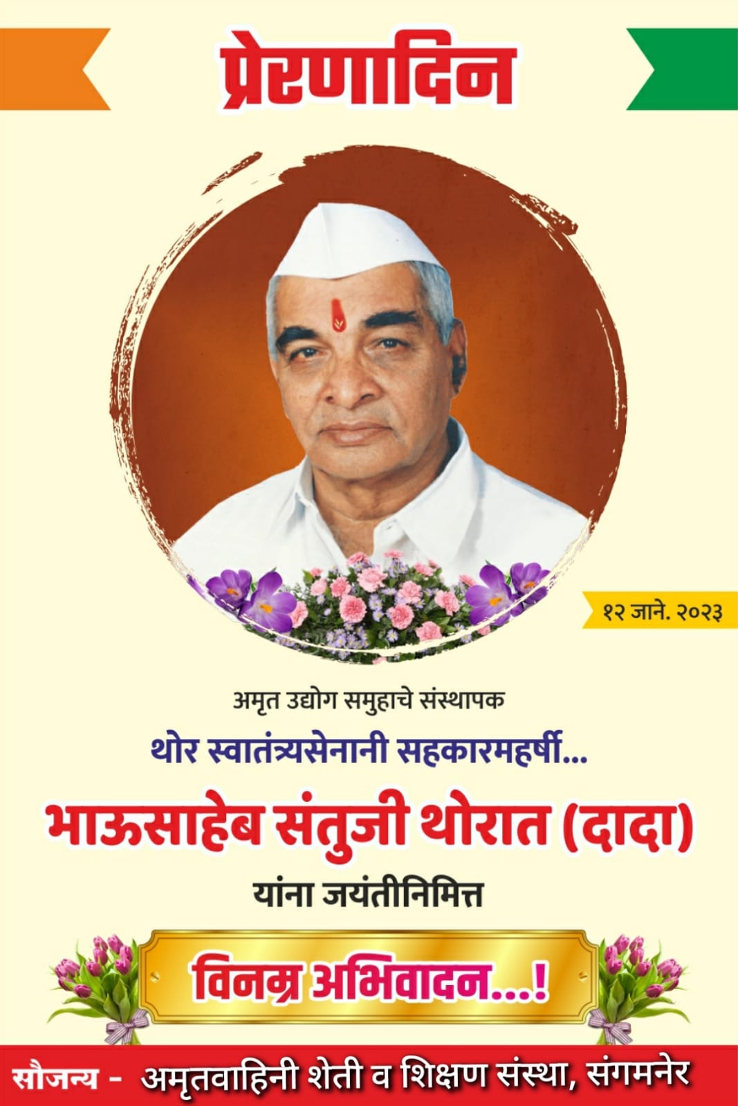 या सर्वांच्या विचाराचा पगडा असणारे स्व.भाऊसाहेब संतुजी थोरात उर्फ तीर्थरुप दादा यांच्या व्यक्तीमत्वाची जडण – घडण स्व.डॉ अण्णासाहेब शिंदे यांच्या बरोबरीने स्वातंत्र्य चळवळीच्या मुशीत झाली. स्वातंत्र्य आंदोलनात महत्वाची भूमिका बजावणार्या दादांनी स्वातंत्र्य प्राप्तीनंतर सहकाराचा मार्ग निवडला.