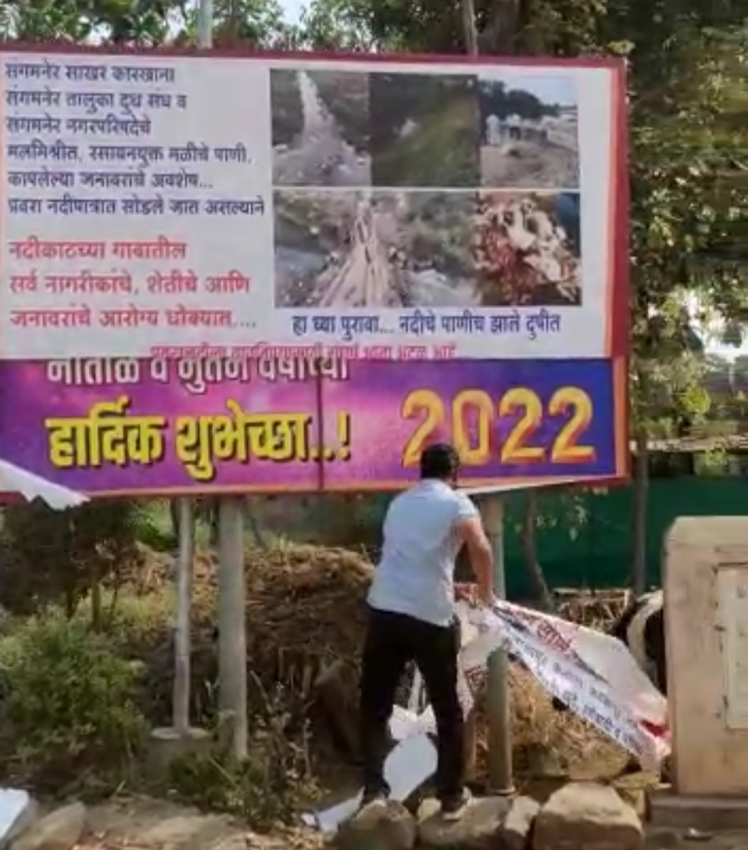 प्रवरानदी बचाव कृती समितीच्या वतीने संगमनेर तालुक्याच्या ग्रामीण भागात कनोली, मनोली, राहिमपूर व तेथील पंचक्रोशीत प्रदूषण या संदर्भाने काढण्यात आलेली छायाचित्रे व त्याचे फ्लेक्स बोर्ड लावण्यात आले होते. हे फ्लेक्स बोर्ड फाडण्यात आले. हे फ्लेक्स बोर्ड फाडणाऱ्या व्यक्तींचे थेट व्हिडिओ चित्रीकरण करण्यात आले असून हे व्हिडीओ चित्रीकरण सोशल माध्यमातून व्हायरल झाले आहे.