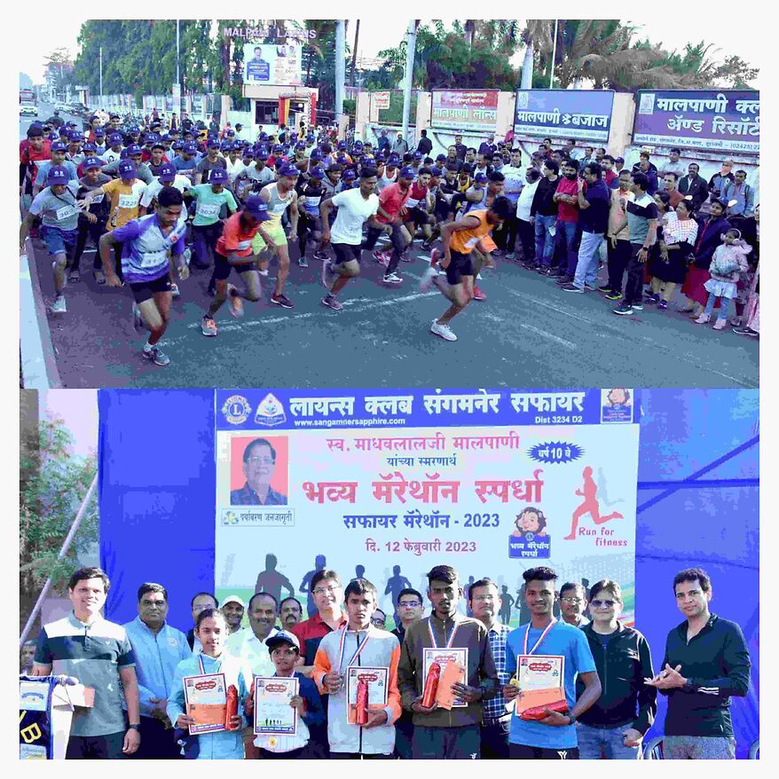 स्वर्गीय उद्योगपती माधवलालजी मालपाणी यांच्या स्मरणार्थ आयोजित करण्यात आलेल्या सफायर मॅरेथॉन स्पर्धेला धावपटूंचा उत्स्फूर्त प्रतिसाद मिळाला. स्पर्धेतील पाच गटांची विजेतेपदे अनुक्रमे अजय राठोड, आर्या अंत्रे, खुशी हासे, सचिन भारद्वाज, आणि संदीप चौधरी यांनी पटकावली.