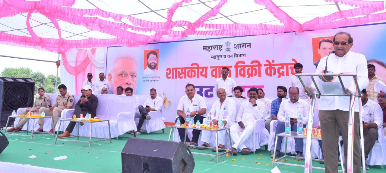 मराठवाड्यातील पहिल्या शासकीय वाळू विक्री केंद्राचे उद्घाटन वैजापूर तालुक्यातील झोलेगाव येथे महसूल मंत्री राधाकृष्ण विखे पाटील यांच्या हस्ते पार पडले. त्यावेळी ते बोलत होते. यावेळी आमदार रमेश बोरनारे, जिल्हाधिकारी आस्तिक कुमार पाण्डेय, पोलीस अधीक्षक मनीष कलवानिया , अपर जिल्हाधिकारी डॉ अनंत गव्हाणे, उपविभागीय अधिकारी राहुल गायकवाड आदी उपस्थित होते.