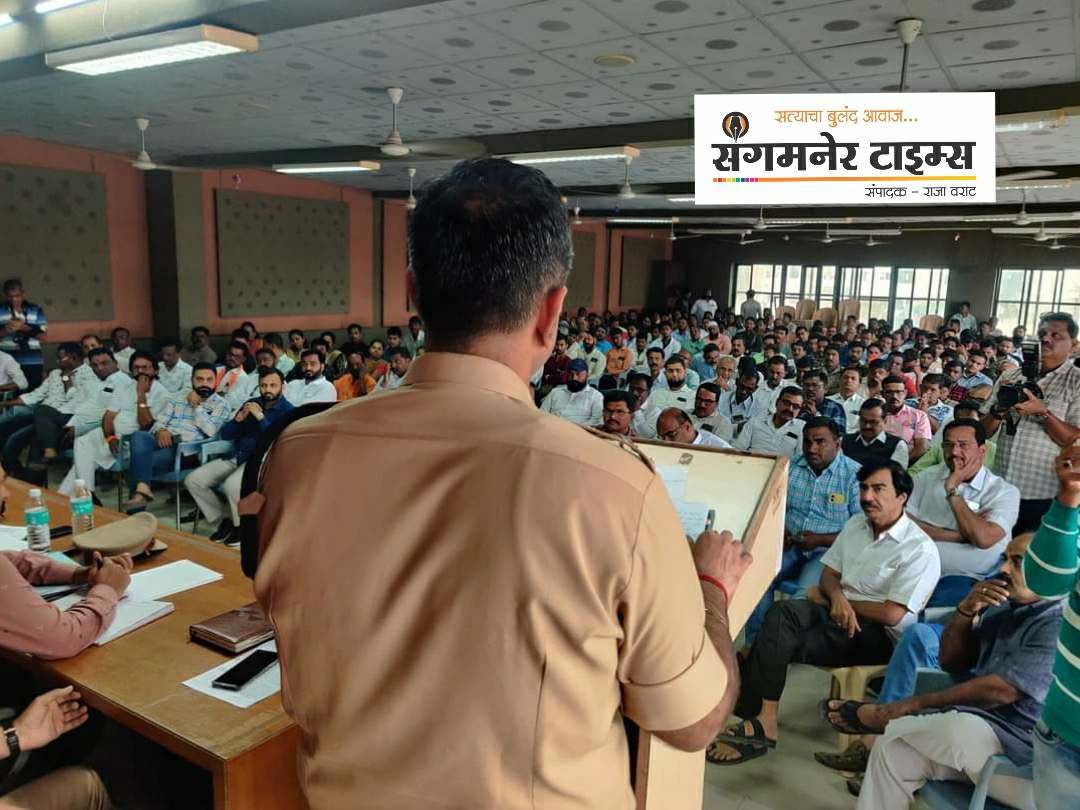 आज संगमनेर शहरात पोलीस अधीक्षक राकेश ओला यांच्या अध्यक्षतेखाली शांतता समितीची बैठक सुरू झाली आणि ही बैठक पुन्हा एकदा इतिवृत्त वाचन, मागील इतिवृत्त, मागील सूचना यावरच रेंगाळली. दरवर्षीप्रमाणे याही वर्षी पोलिसांना याबाबत ठोस कृती करता आलेली नाही. इतिवृत्ता मध्ये काय मांडले आहे ? आपण वर्षभर काय करणार आहोत ? शांतता समितीच्या बैठकीचे फलित काय ? याबाबत ना पोलिसांना काही घेणं देणं आहे. ना शांतता समितीच्या सदस्यांना. गणेशोत्सव मंडळाचे कार्यकर्ते आणि पदाधिकारी गणेशोत्सव शांततेत आणि नेहमीप्रमाणे पारंपारिक पद्धतीने कसा पार पडेल, पोलिसांच्या परवानग्या कशा मिळतील, पोलिसांच्या कचाट्यात आपली मंडळी कशी सापडणार नाहीत. यासाठी मौन बाळगून बसावे लागते.