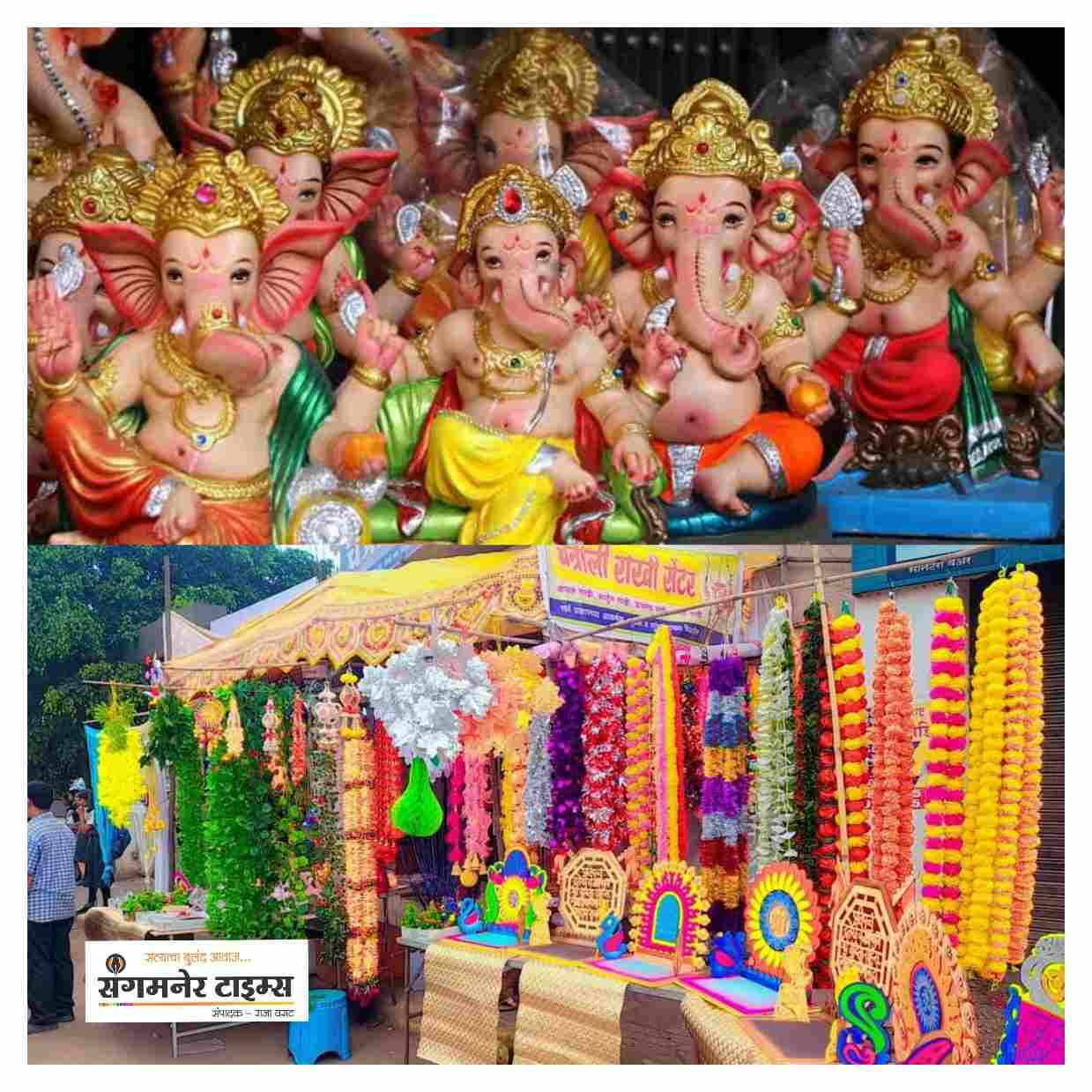 श्री गणेशाची मूर्ती घेण्यासाठी शहरातील विविध चौकांमध्ये भक्तांनी गर्दी केली होती. पारंपारिक गणपती मिळवण्यासाठी कुंभार आळा, नवीन नगर रोड, शहरातून जाणारा पुणे नाशिक महामार्ग, सह्याद्री विद्यालय, केसकर कॉम्प्लेक्स केकवाला शॉपी, मार्केट यार्ड सह विविध ठिकाणी गणेश मूर्ती आणि सजावटीचे सामान विक्रीसाठी ठेवण्यात आले होते. नागरिकांसह गणेश भक्तांनी लहान मुलांनी खरेदीसाठी गर्दी केली होती.