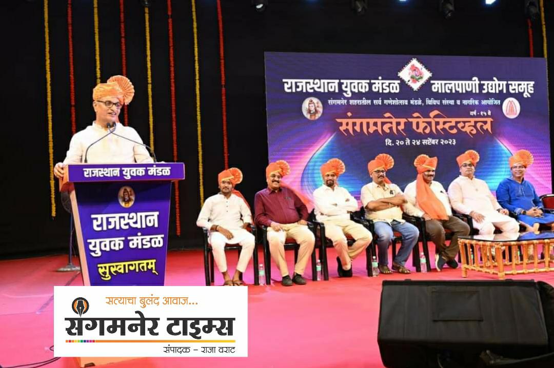 राजस्थान युवक मंडळ व मालपाणी उद्योग समूहाने आयोजित केलेल्या संगमनेर फेस्टिव्हलच्या पंधराव्या वर्षाच्या शुभारंभ कार्यक्रमात ते बोलत होते. फेस्टिव्हलचे अध्यक्ष मनीष मालपाणी, उद्योजक बाळासाहेब देशमाने, संगमनेर मर्चन्ट्स बॅैंकेचे अध्यक्ष संतोष करवा, शारदा पतसंस्थेचे अध्यक्ष राजेश लाहोटी, अमृतवाहिनी बँकेचे चेअरमन सुधाकर जोशी, ओम जाजू, मंडळाचे कार्याध्यक्ष सम्राट भंडारी, उपाध्यक्ष सुदर्शन नावंदर, सचिव ओंकार इंदाणी, कोषाध्यक्ष व्यंकटेश लाहोटी, माजी कार्याध्यक्ष रोहित मणियार आदी मंचावर उपस्थित होते.