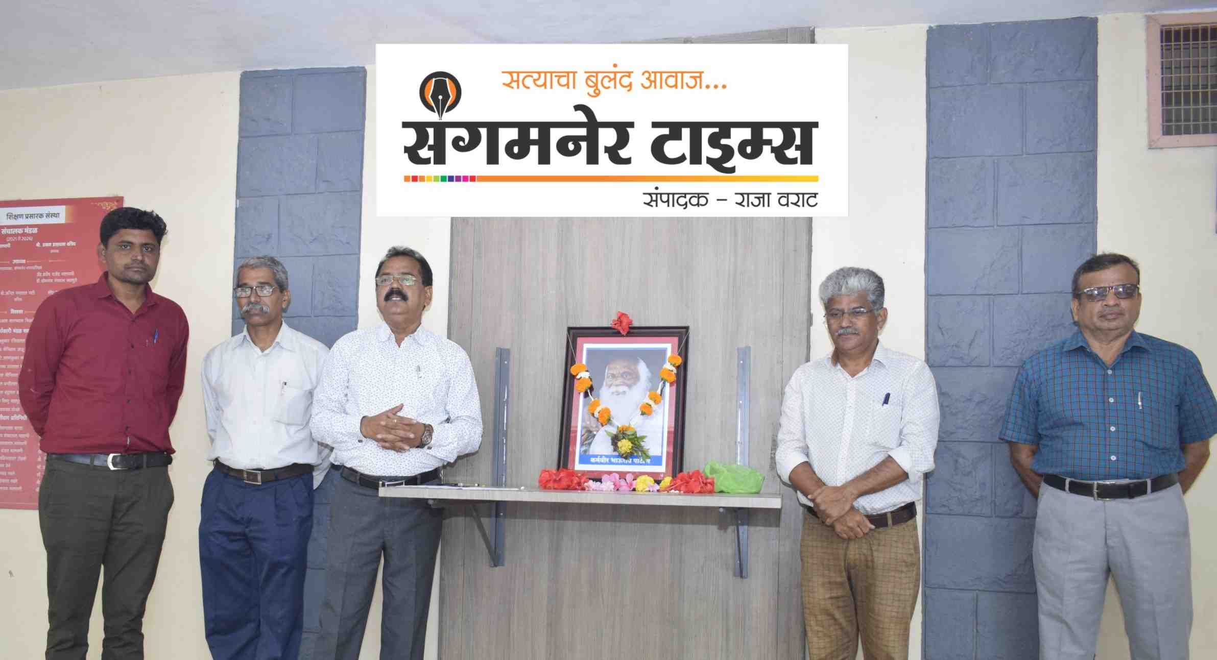 संगमनेर महाविद्यालयात कर्मवीर भाऊराव पाटील यांची जयंती साजरी करण्यात आली. याप्रसंगी महाविद्यालयाचे प्राचार्य डॉ.अरुण गायकवाड यांच्या हस्ते कर्मवीर भाऊराव पाटील यांच्या प्रतिमेला पुष्पहार अर्पण करुन अभिवादन करण्यात आले. उपप्राचार्य डॉ.आर.बी. ताशिलदार, , प्रा.अरुण लेले, प्रा.डॉ. कुरकुटे एच.टी. सचिव संतोष फापाळे, विजय पाटील मान्यवर उपस्थित होते.