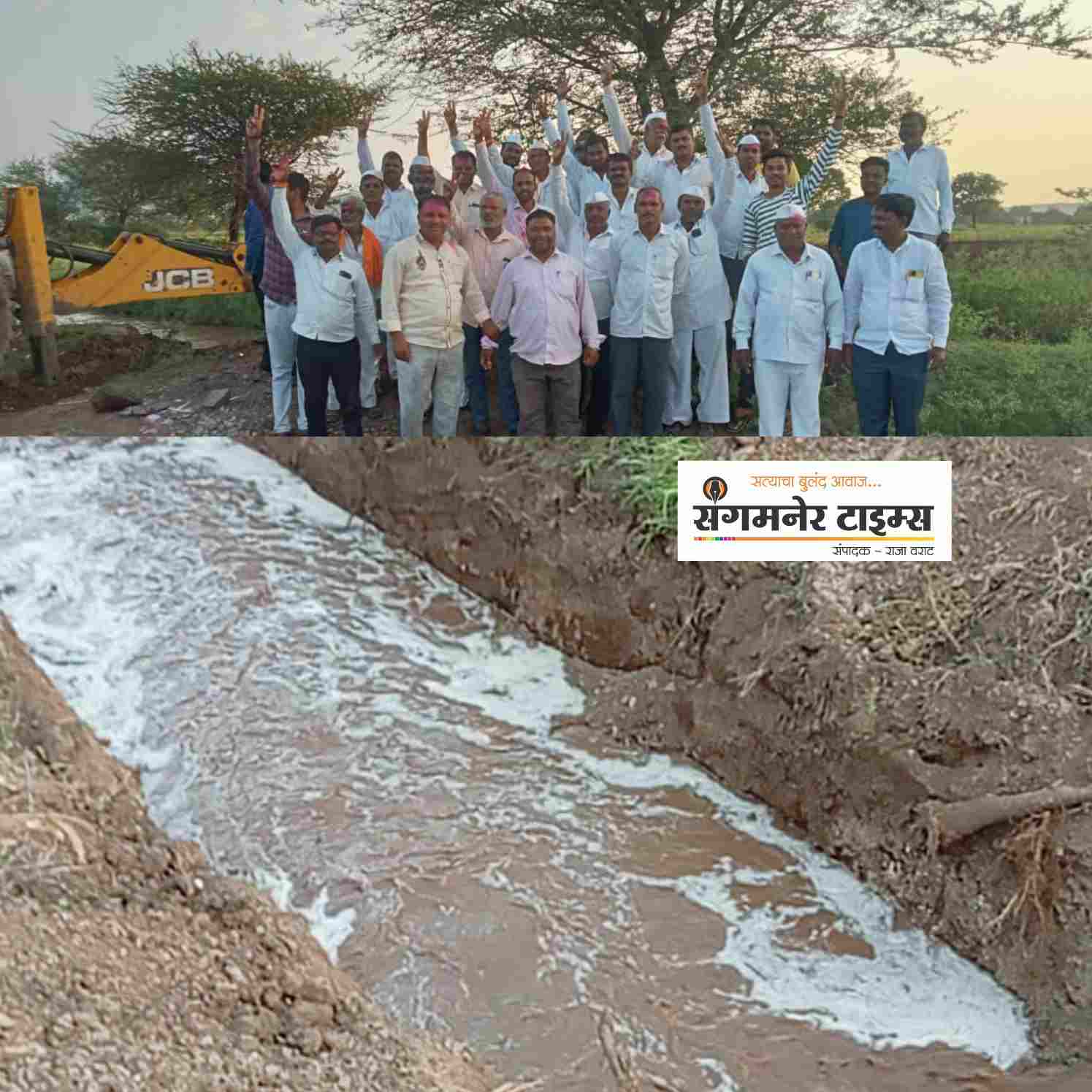 भोजापूर धरणाच्या लाभक्षेत्रातील शेतकऱ्यांनी आपल्या हक्काच्या पाण्यासाठी सुरू केलेल्या संघर्षाला अखेर यश मिळाले. मागील चार पाच दिवसांपासून जलसंधारण विभागाचे अधिकारी आणि स्थानिक शेतकऱ्यांच्या एकजुटीने भोजापूरच्या पाण्याचा विसर्ग तळेगावकडे मार्गस्थ झाल्याने अनेक वर्षाची प्रतिक्षा आज संपली आहे. पालकमंत्री राधाकृष्ण विखे पाटील यांना यांनी अधिकाऱ्यांशी संपर्क ठेवून शेवटच्या गावापर्यत पाणी मिळेपर्यत काम सुरू ठेवण्याच्या सूचना दिल्यामुळे या कामाला चांगलीच गती आली आहे.