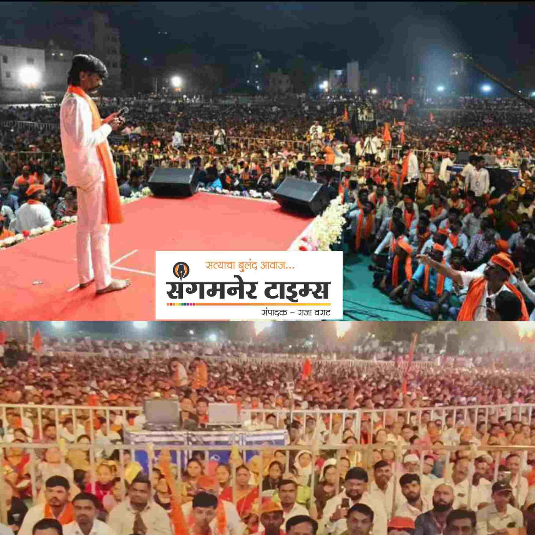 मराठा समाजाला एकत्र करत वज्रमुठ आवळणारे मराठा योद्धा मनोज जरांगे पाटील यांची बुधवारी सायंकाळी संगमनेरमध्ये जाणता राजा मैदानावर सभा झाली यावेळी जरांगे पाटील बोलत होते. या सभेला मोठ्या संख्येने उपस्थिती होती.