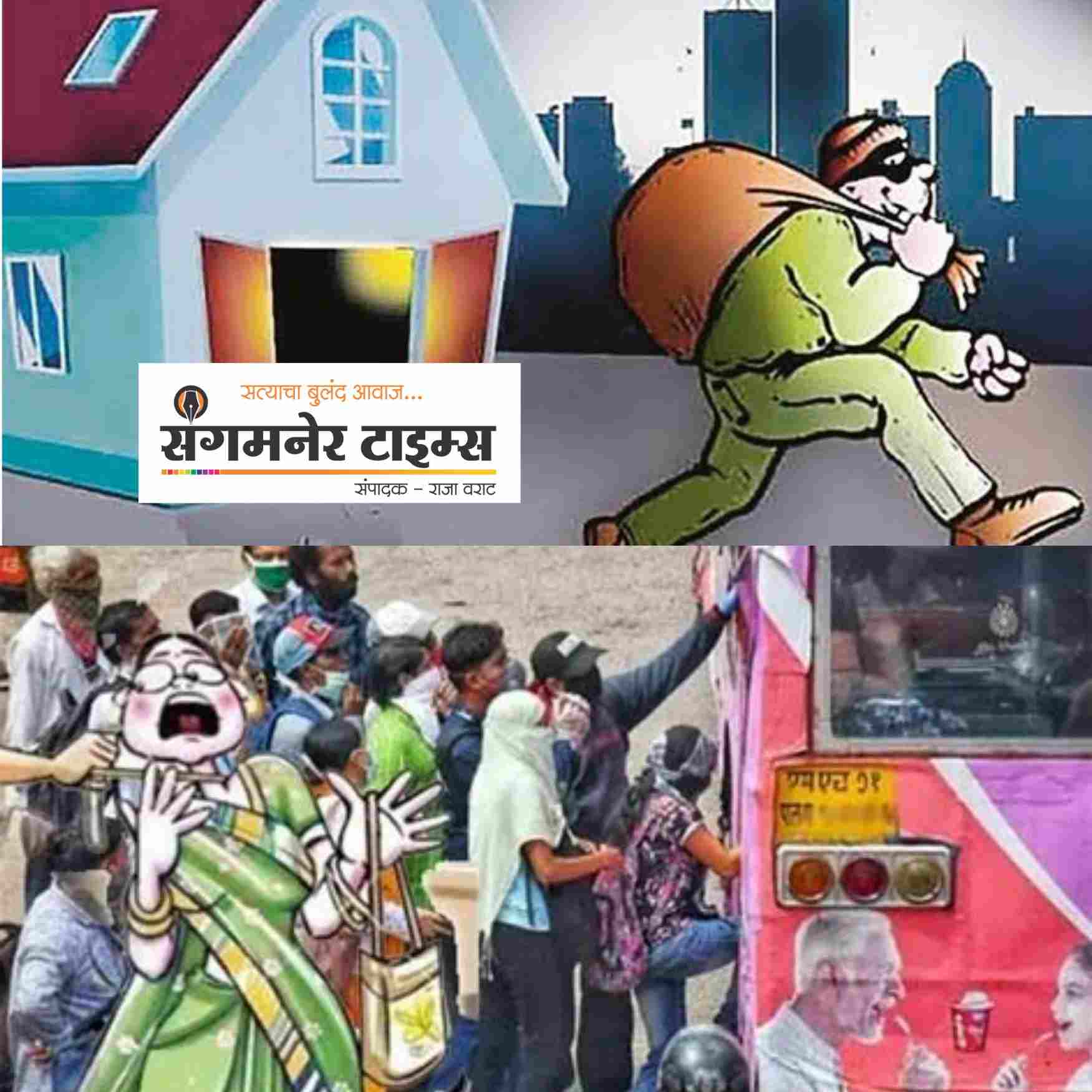 संगमनेर शहरात चोरट्यांनी धुमाकूळ घातला असून बस स्थानकावरून सोन्याचे गंठण तर दिल्ली नाक्यावर घरफोडी करून वायर चोरून नेली आहे. त्याचप्रमाणे दररोजच्या मोटरसायकल चोरीच्या घटना ह्या रतीब घातल्याप्रमाणे सुरू आहेत.