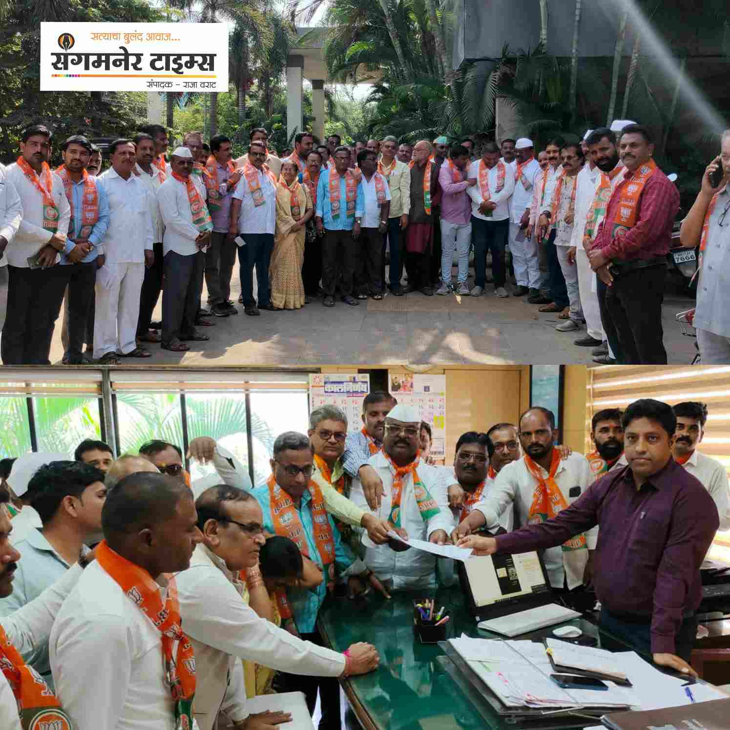 यावेळी संगमनेर भाजपाचे तालुकाध्यक्ष वैभव लांडगे, शहराध्यक्ष ॲङ.श्रीराम गणपुले, वसंतराव देशमुख, मच्छिंद्र थेटे, रामचंद्र जाजू, हाफीज शेख, राजेंद्र सांगळे, आसिफ पठाण, भारत गवळी, सिताराम मोहरीकर, बुवाजी खेमनर, श्रीनाथ थोरात, माधव थोरात, संदीप वर्पे, नितीन पानसरे, शशिकला पवार, काशिनाथ पावसे, साहेबराव वलवे, सुमित काशिद, भाऊसाहेब आहेर, शिवाजी आहेर, अशोक खेमनर, दिलीप रावळ, महेश मांडेकर, बबलू काझी, निसार शेखलाल, संतोष हांडे, हरीष वलवे, सुयोग गुंजाळ, नासीर शेख, गणेश पावसे, केतन भांगरे, पंडीत वेताळ, निखिल सानप, अमित थोरात, भगवान जाधव, शुभम सोनवणे, संदीप गुंजाळ, नानासाहेब खुळे, ऋषीकेश गुंजाळ, दत्तात्रय बढे, दत्तात्रय चांगले, अतुल कातोरे आदी कार्यकर्ते उपस्थित होते.