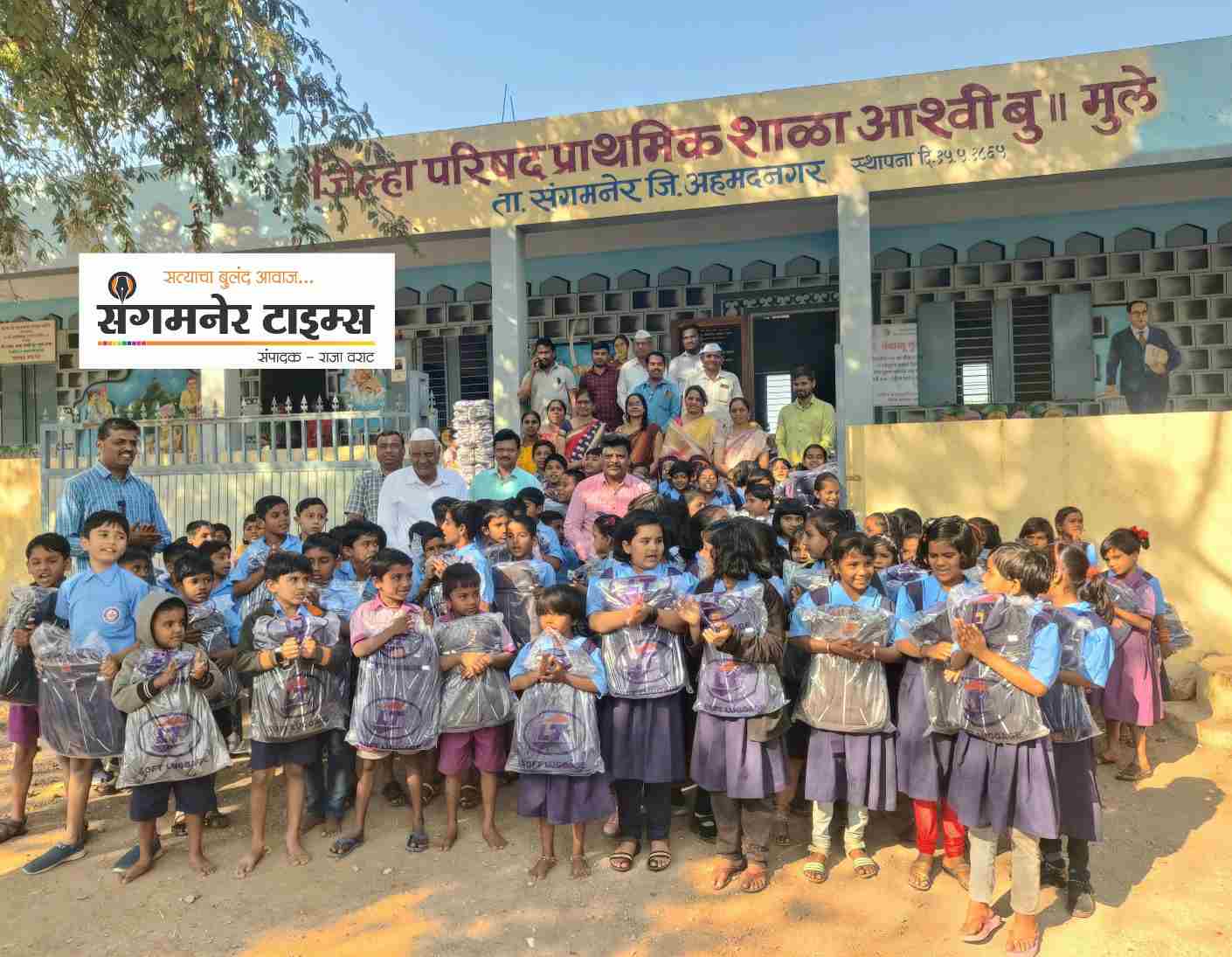 सेवानिवृत्त मुख्याध्यापक शंकरराव विठोबा हिंगे गुरुजी यांच्या शैक्षणिक क्षेत्रातील कार्याचा गुणगौरव म्हणून ७८ व्या वाढदिवसाच्या निमित्ताने त्यांच्या परिवाराकडून आश्वी बुद्रुक येथील जिल्हा परिषद प्राथमिक शाळेतील मुले व मुलीना २४० दप्तरांचे वितरण करण्यात आले.