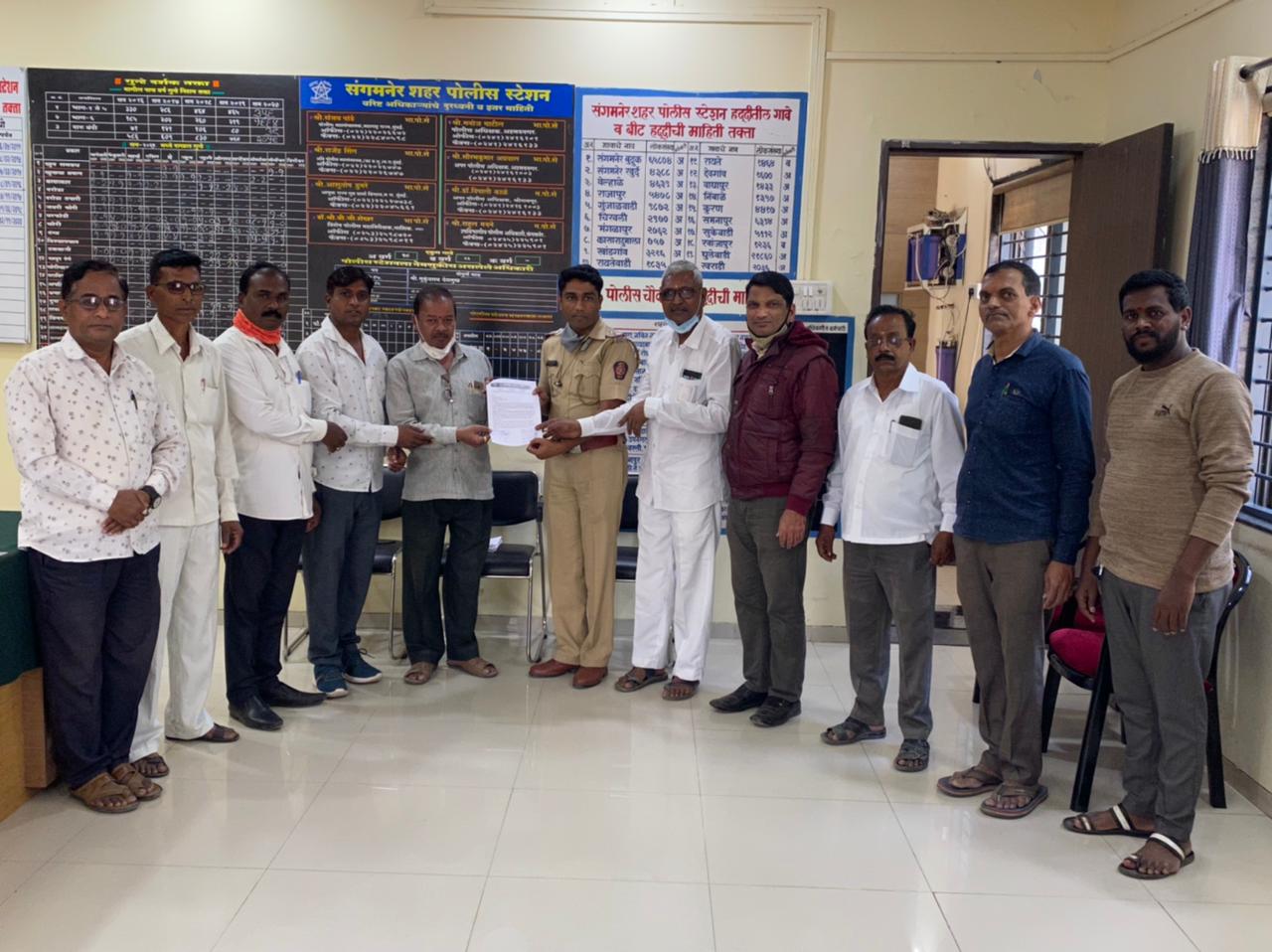 याप्रसंगी भाजपचे ज्येष्ठ नेते राम जाजू , युवा मोर्चा जिल्हाध्यक्ष श्रीराज डेरे, जिल्हा उपाध्यक्ष सुधाकर गुंजाळ, जिल्हा सचिव राजेंद्र सांगळे, तालुकाध्यक्ष अशोक इथापे, किसान मोर्चा अध्यक्ष सतीश कानवडे, जिल्हा प्रसिद्धी प्रमुख दिनेश सोमाणी, हरीश वलवे, माजी तालुका अध्यक्ष काशिनाथ पावसे, युवा मोर्चा जिल्हा उपाध्यक्ष कल्पेश पोगुल, हरीश चकोर, जिल्हा महिला आघाडी उपाध्यक्ष रेश्मा खांडरे, ज्योती भोर, दिलीप रावल, शिवकुमार भंगीरे, विकास गुळवे, जग्गु शिंदे, अरुण शिंदे, अमोल रणाते, सुमित राऊत, प्रमोद भोर, सोमनाथ बोरसे, संजय वाकचौरे, सचिन मुके यांनी पोलीस प्रशासनाकडे सदर निवेदन देऊन कारवाईची मागणी केली आहे.