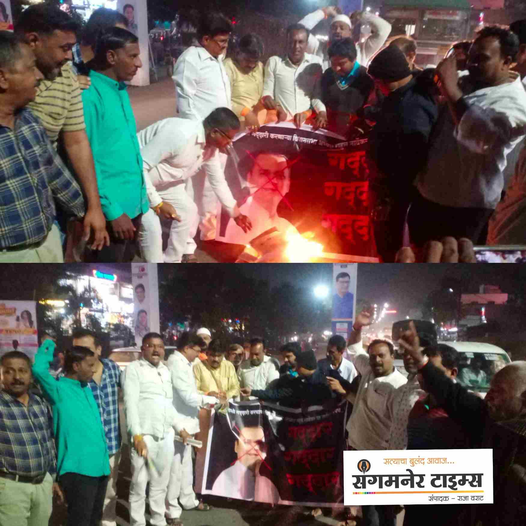शिंदे यांच्या बाजूने निकाल दिल्यानंतर संतप्त झालेल्या शिवसेना (उद्धव बाळासाहेब ठाकरे) शिवसैनिकांनी आणि पदाधिकाऱ्यांनी संगमनेर बस स्थानकाजवळ एकत्र येत प्रवेशद्वारावर राहुल नार्वेकर यांचे छायाचित्र असलेल्या बॅनर वर जोड्याने मारत बॅनर जाळून जोरदार घोषणा देत निषेध केला.