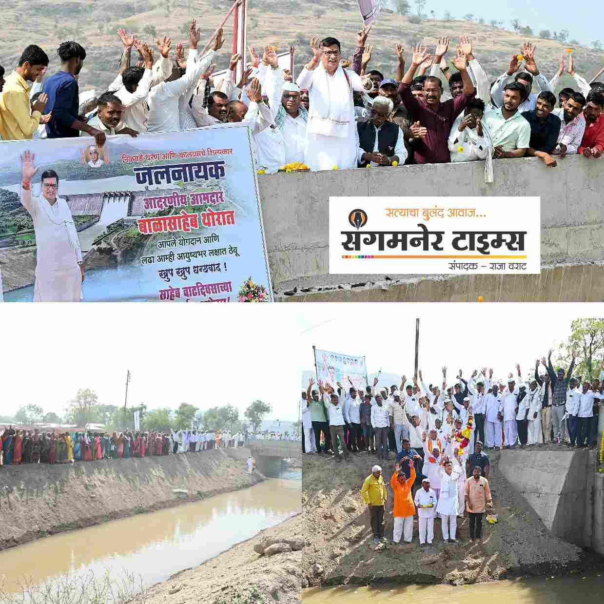 जलनायक आमदार बाळासाहेब थोरात यांच्या सततच्या पाठपुराव्यातून धरण व कालवे पूर्ण झाले असून उजव्या कालव्यातून आलेल्या पाण्याचे गावोगावी जंगी स्वागत केले असून पारंपारिक वाद्य व ढोल ताशांच्या गजरासह जेसीबीतून फुलांची उधळण करत नागरिकांनी आमदार बाळासाहेब थोरात यांच्या हस्ते जलपूजन करण्यात आले. डाव्या नंतर उजव्या कालव्यातून निळवंडे चे पाणी आल्याने केलेल्या कामाचे समाधान व स्वप्नपूर्ती झाले असल्याचे प्रतिपादन आमदार बाळासाहेब थोरात यांनी केले आहे.