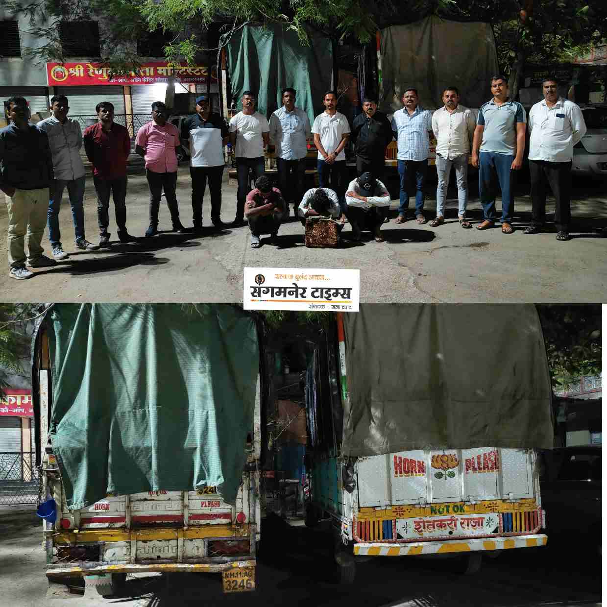 गुन्हे शाखेच्या पथकाला गुप्त बातमीदारामार्फत जमजम कॉलनी, संगमनेर या ठिकाणी गोवंश जनावरांची कत्तल करण्यात येत आहे. अशी माहिती मिळाली. पहाटे या ठिकाणी छापा टाकून वरील तिघांसह मुद्देमाल हस्तगत केला आहे.