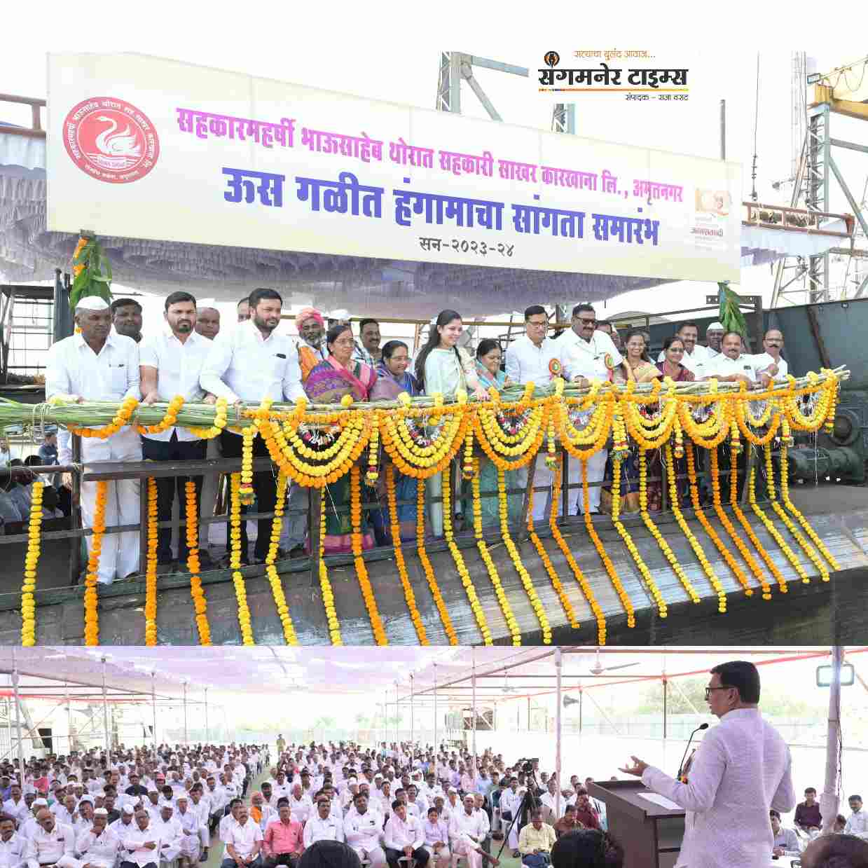 सहकार महर्षी भाऊसाहेब थोरात सहकारी साखर कारखान्याच्या सन 2023 – 24 या गळीत हंगामाच्या सांगता समारंभ प्रसंगी कार्यक्रमात ते बोलत होते. व्यासपीठावर कांचनताई थोरात, डॉ. जयश्री थोरात, रणजीतसिंह देशमुख, संतोष हासे, हिरालाल पगडाल, इंद्रजीत थोरात, हौशीराम सोनवणे, गणेश कारखान्याचे व्हा. चेअरमन विजय दंडवते, विक्रांत दंडवते, अर्चना बालोडे, अविनाश सोनवणे, ॲड.रामदास शेजुळ, मीरा शेटे, निर्मला राऊत आदींसह विविध पदाधिकारी उपस्थित होते.