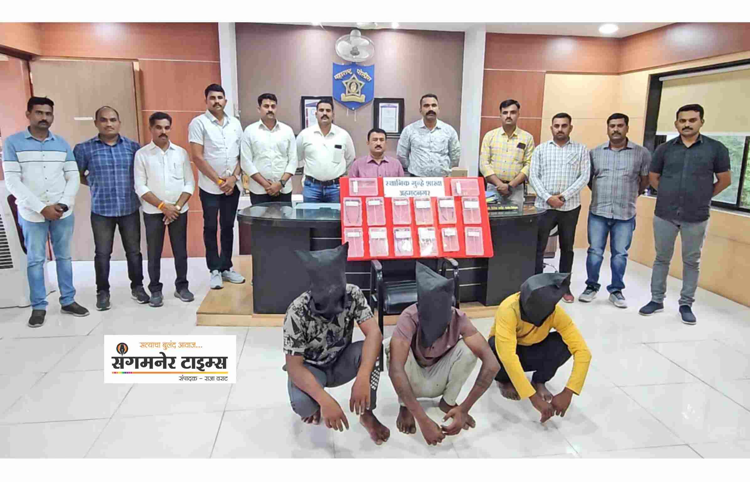 यामध्ये तीन गुन्हेगारांना ताब्यात घेण्यात आले आहे तर इतर तीन साथीदार पसार असून ते आरोपी असल्याचे निष्पन्न झाले आहे. संगमनेर सह शिर्डी, श्रीरामपूर, शेवगाव, तोफखाना नगर, राहुरी, कोपरगाव आदी ठिकाणी या गुन्हेगारांनी या सोनसाखळी चोऱ्या केल्या आहेत.