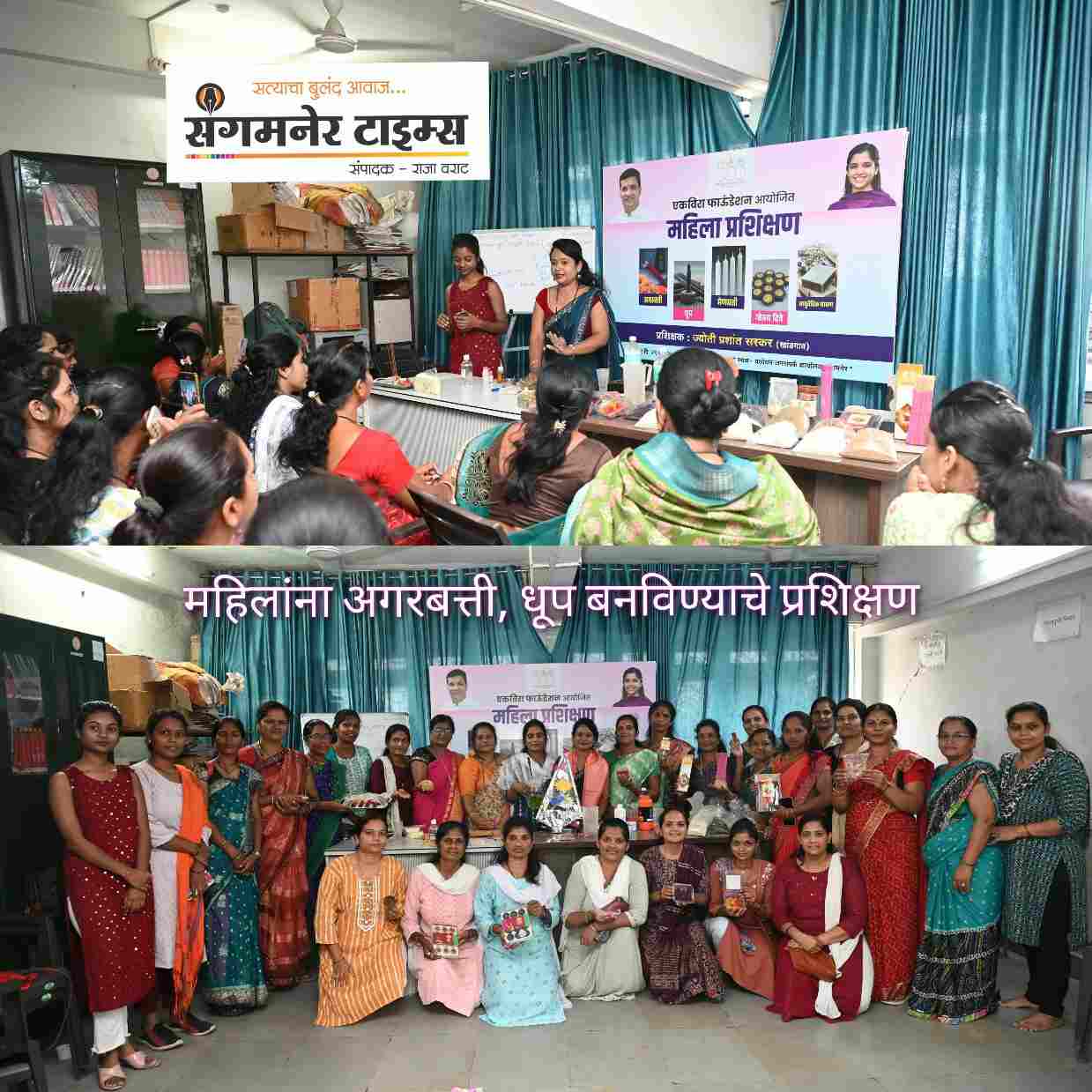 आमदार बाळासाहेब थोरात यांच्या यशोधन जनसंपर्क कार्यालयात एकविरा फाउंडेशनच्या वतीने महिला उद्योजक कार्यशाळा संपन्न झाली यावेळेस मार्गदर्शिका ज्योती सस्कर, सुनीता कांदळकर, कविता पानसरे, रेखा फटांगरे, शितल उगलमुगले, कमल अरगडे, अमृता राऊत, दिपाली राहणे, मनीषा शिंदे आदिंसह महिला उपस्थित होत्या. या कार्यशाळेत महिलांना अगरबत्ती, दिवे, सुगंधी धूप, मेणबत्ती बनवण्याचे प्रशिक्षण देण्यात आले.