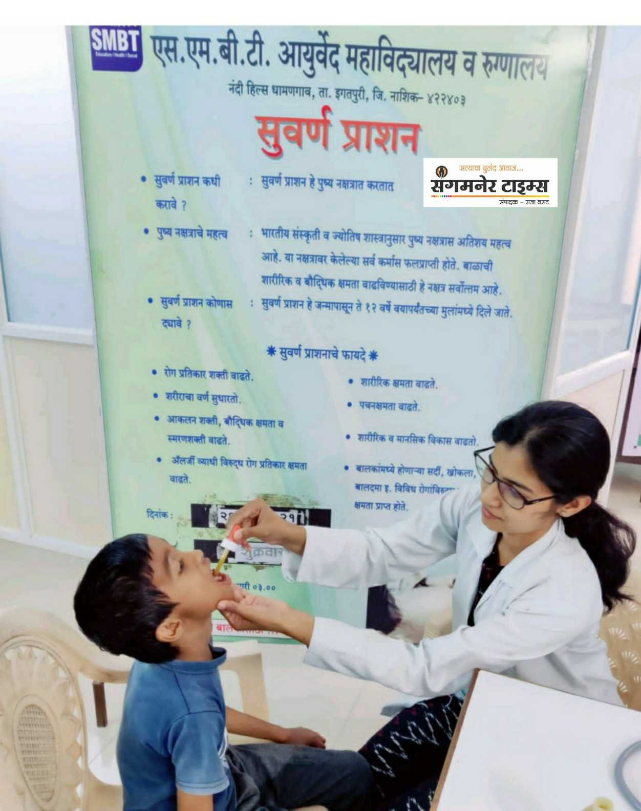 एसएमबीटी आयुर्वेद हॉस्पिटलतर्फे चार ठिकाणी मोफत सुवर्णप्राशन शिबीर