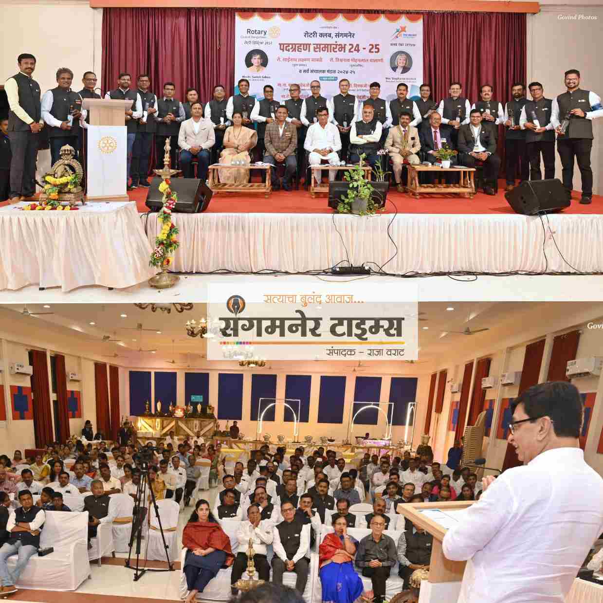 रोटरी क्लब ऑफ संगमनेरचे मावळते अध्यक्ष आनंद हासे यांनी अध्यक्षपदाची सूत्रे साईनाथ साबळे यांच्याकडे तर मावळते सचिव मधुसूदन करवा यांनी सचिवपदाची सूत्रे विश्वनाथ मालाणी यांचेकडे सुपूर्त केली. व्यासपीठावर प्रमुख अतिथी म्हणून माजी प्रांतपाल डॉ. दीपक पोफळे, सहाय्यक प्रांतपाल विनोद पाटणी, माजी नगराध्यक्षा दुर्गाताई तांबे, संगमनेर तालुका युवक काँग्रेस अध्यक्षा डॉ. जयश्री थोरात आदि उपस्थित होते.