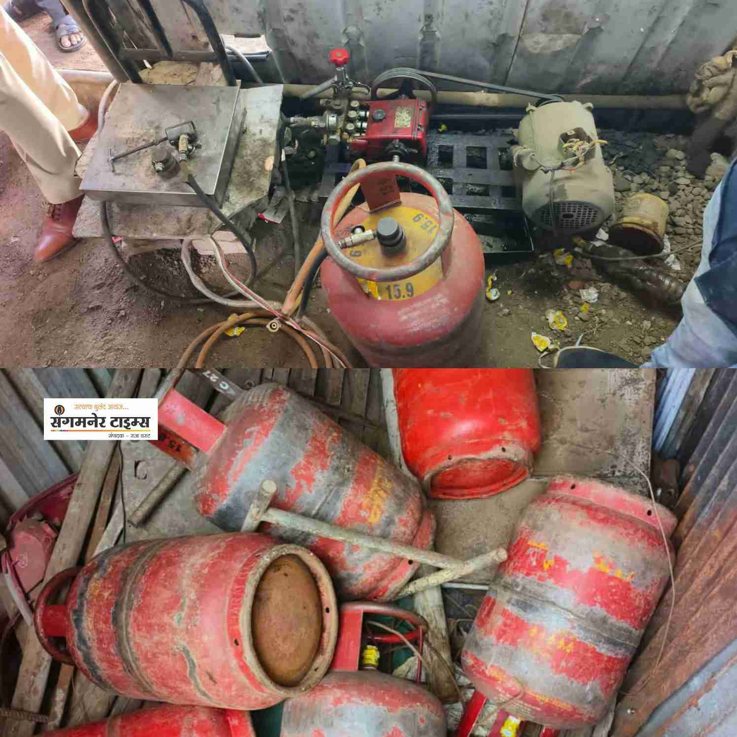 पोलिसांनी शहरातील दोन ठिकाणी तीन गॅस रिफिलिंग सेंटरवर छापे टाकले. या दोन्ही ठिकाणाहून भारत, एचपी, इंडेन गॅसच्या घरगुती वापराच्या टाक्यांसह, एक मारुती ओमनी कार, रिफिलिंगसाठी वापरण्यात येणारे सुमारे पंधरा लाख रुपयांचे साहित्य जप्त करण्यात आले आहे.