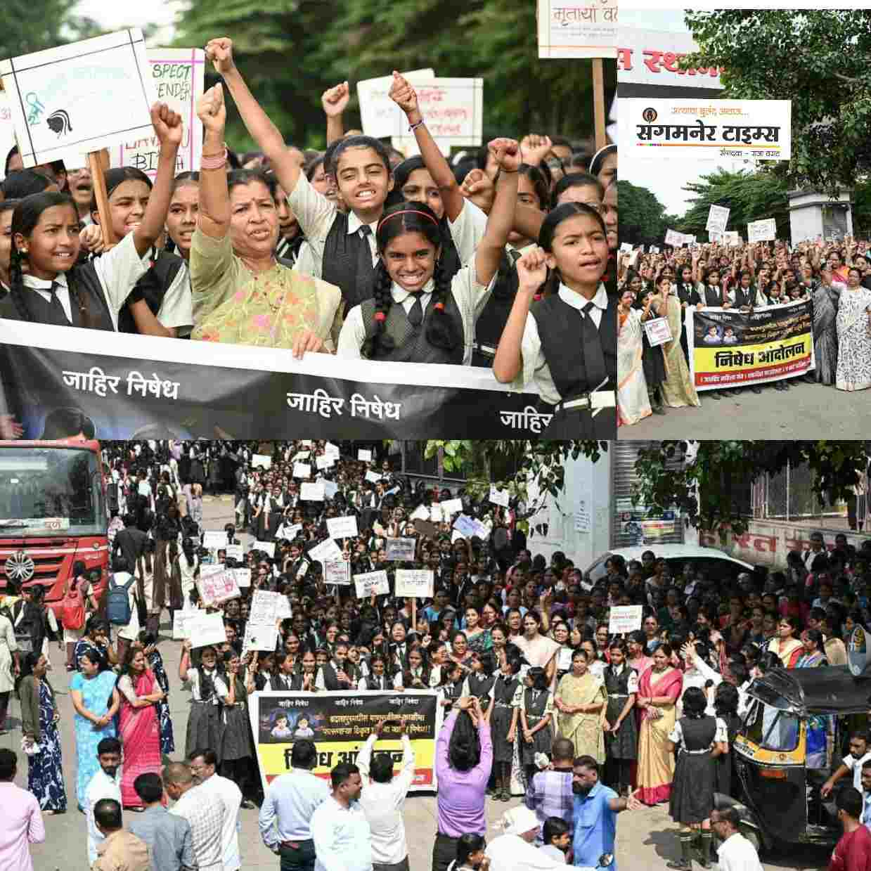 संगमनेर शहरात जयहिंद महिला मंच, एकविरा फाउंडेशन व विविध महिला संघटनांच्या वतीने भव्य निषेध मोर्चा झाला यामध्ये दुर्गाताई तांबे, सुनीता कोडे, अर्चना बालोडे, डॉ. श्रद्धा वाणी, सुनीता कांदळकर, शितल उगलमुगले, सुरभी मोरे, मनीषा शिंदे, नम्रता पवार, अमृता राऊत, सोसे, यांच्यासह शेकडो मुली सहभागी झाल्या होत्या.