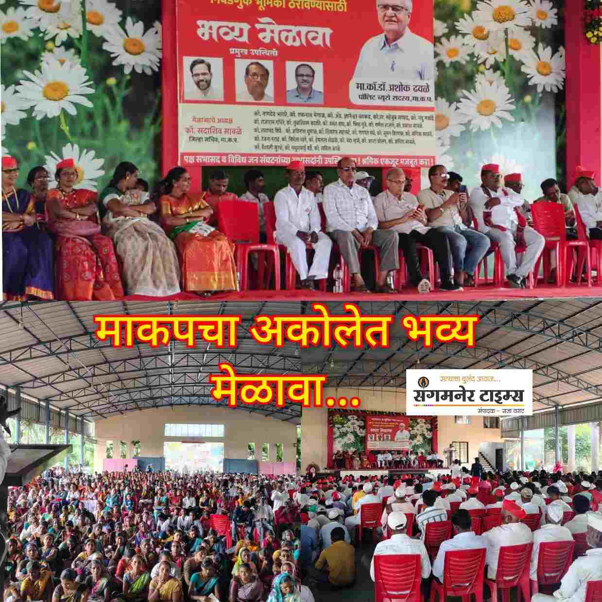 मार्क्सवादी कम्युनिस्ट पक्षाचे पॉलिट ब्युरो सदस्य व अखिल भारतीय किसान सभेचे राष्ट्रीय अध्यक्ष डॉ. अशोक ढवळे व सचिव मंडळ सदस्य डॉ. अजित नवले, किसन गुजर व सुनील मालुसरे यांच्या प्रमुख उपस्थितीमध्ये आज अकोले येथे मार्क्सवादी कम्युनिस्ट पक्षाने आपल्या सर्व जन संघटनांच्या सहभागाने मोठे शक्ती प्रदर्शन केले. पक्षाच्या वसंत मार्केट येथील कार्यालयापासून भव्य रॅली काढत शहरांमध्ये पक्षाने आपली ताकद दाखवली. पारंपारिक नृत्य, महिलांचे झांजपथक व पारंपारिक वाद्याच्या निनादामध्ये आणि श्रमिक एकजुटीच्या गगनभेदी घोषणांच्या आवाजात शहरातून महाराजा लॉन्स पर्यंत ही रॅली काढण्यात आली.