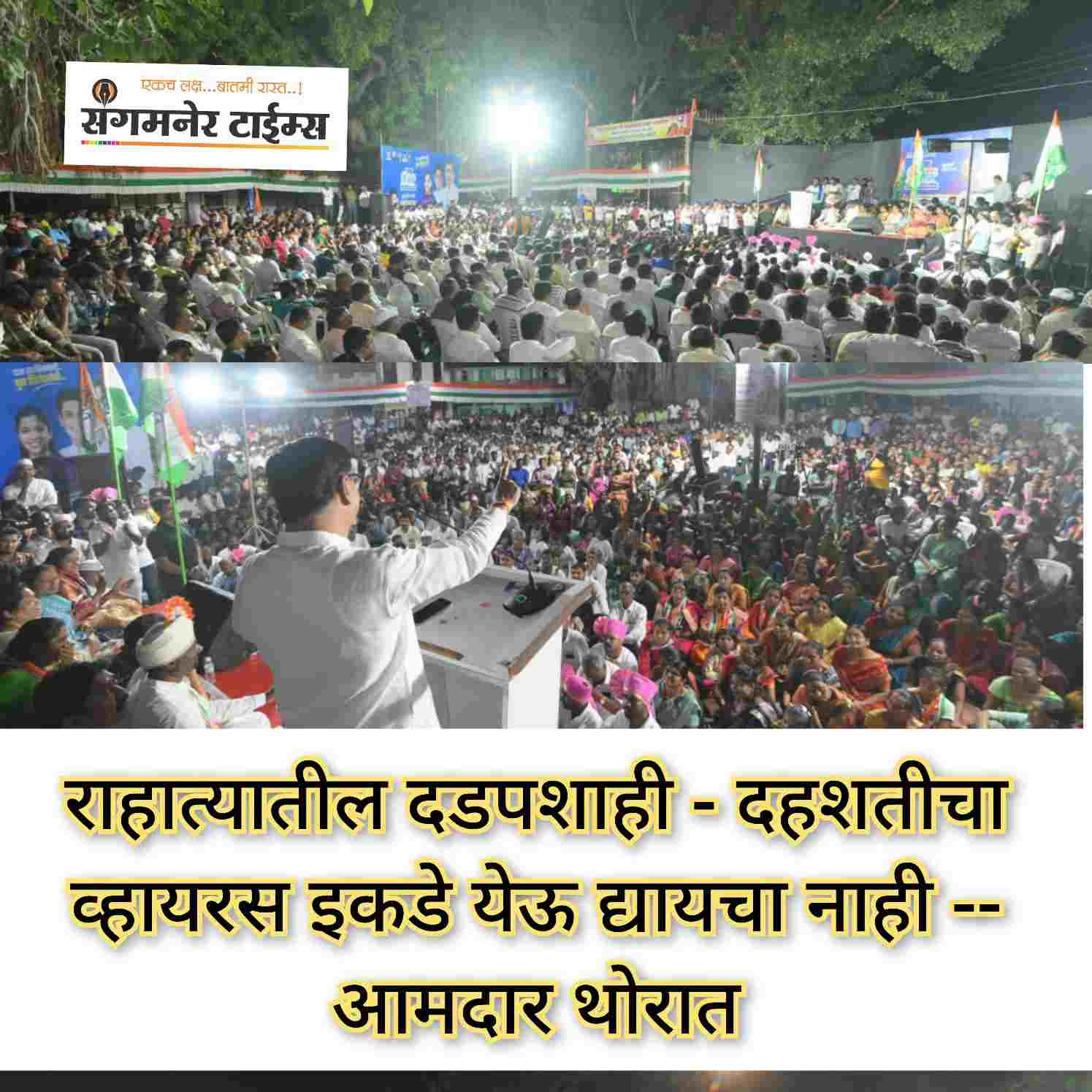 आमदार थोरात म्हणाले की, सर्वसामान्यांच्या जीवनात आनंद निर्माण करण्याचे काम संगमनेर तालुक्यात केले आहे. याउलट राहता तालुक्यात त्यांची मोठी दहशत आहे. कोणी विरोधी बोलले तर तंगड्या मोडल्या जात आहे. त्यांच्या कट्टर समर्थकांना विचारले तर ते सुद्धा सांगतील की संगमनेर तालुका हा सर्वात चांगला तर सर्वात दडपशाही राहता तालुक्यामध्ये आहे.