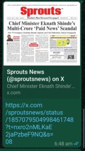 शिंदे गटाच्या शिवसेनेच्या उमेदवारांना निवडणुकीसाठी मुख्यमंत्री एकनाथ शिंदे यांनी कोट्यवधी रुपये पाठविले असल्याची चर्चा असतानाच आता त्यांनी मराठी, गुजराती वृत्तपत्रांना कोट्यावधी रुपयांच्या पेड न्यूज दिल्या असल्याच्या बातम्या झळकू लागल्या आहेत. त्यामुळे निवडणुकीतील पैशाचे राजकारण पुन्हा चव्हाट्यावर आले आहे. असे असताना विरोधी उमेदवारांना मुख्यमंत्र्यांकडून किती कोटी रुपयांचे पॅकेज मिळाले याची जोरदार चर्चा मतदार संघात रंगली आहे.