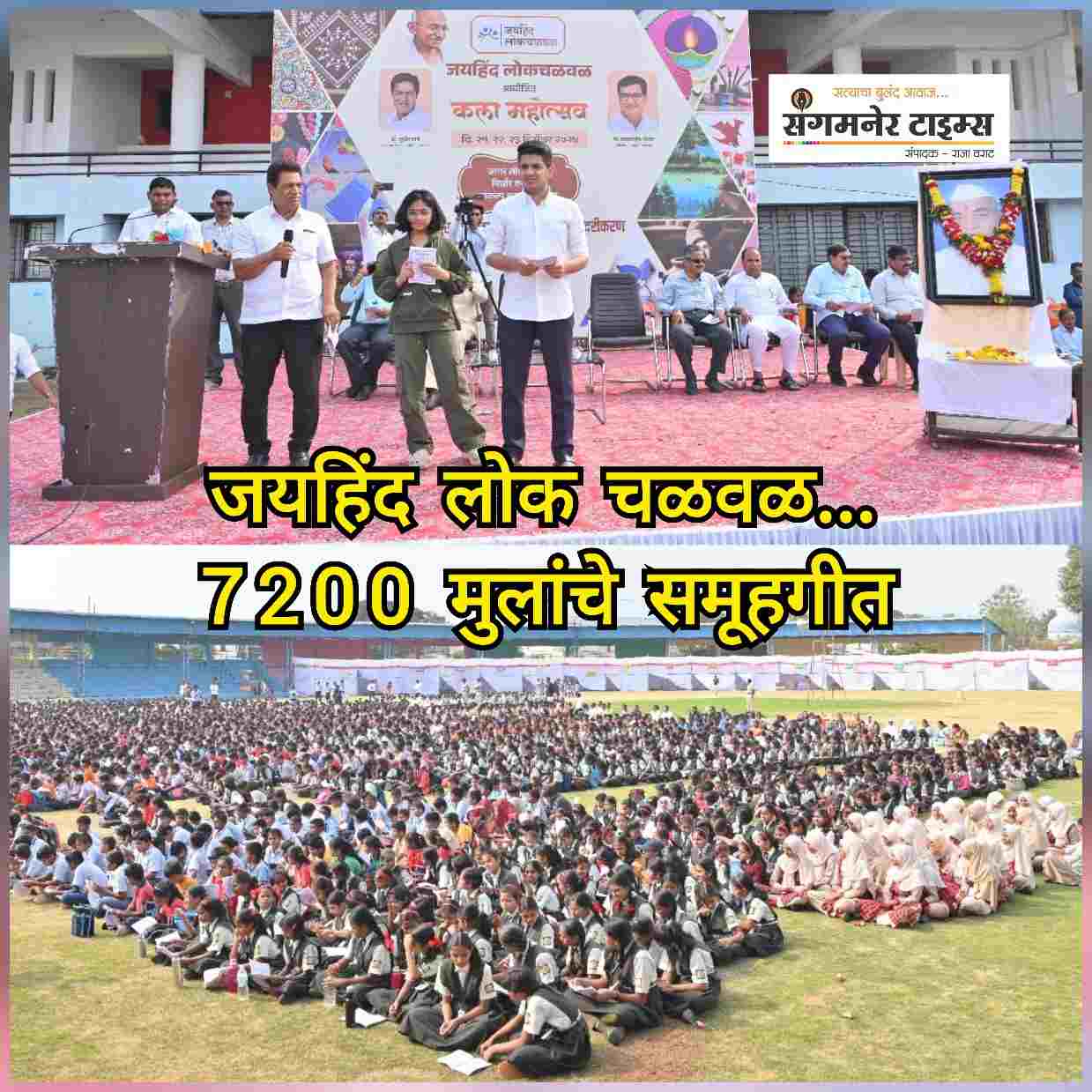 जयहिंद लोकचळवळीचे प्रणेते माजी आमदार डॉ. सुधीर तांबे यांच्या मार्गदर्शनाखाली विद्यार्थ्यांमध्ये विविध प्रकारच्या कलागुणांना अधिक प्रोत्साहन देण्यासाठी जयहिंद लोकचळवळीच्या वतीने आयोजित कला महोत्सवात तीन दिवसात 15000 विद्यार्थ्यांनी सहभाग नोंदवला तर 7200 विद्यार्थ्यांनी एक तालात देशभक्तीपर गीते गायल्याने परिसर दुमदुमून दिला.