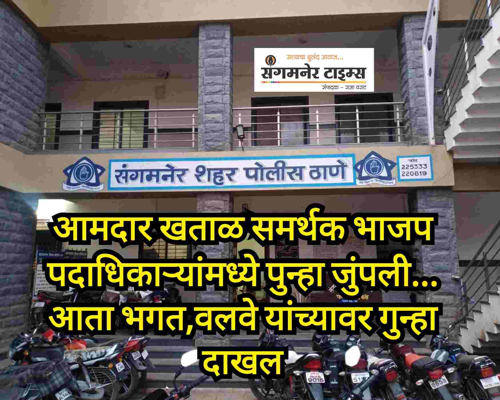 आमदार अमोल खताळ समर्थक आणि भाजप पदाधिकाऱ्यांमधील भांडखोरी मोठ्या प्रमाणावर वाढली असून ती थेट आता पोलीस ठाण्यात गेली आहे. पोलिसांनी देखील दोन्ही गटांना खुले मैदान दिले असून ‘तुम्ही फिर्यादी देत रहा आणि गुन्हे दाखल करू’ असा पवित्रा घेतला आहे. त्यामुळे एकमेकांविरुद्ध तक्रारी देऊन गुन्हे दाखल करण्याचा उद्योग सुरू झाला आहे.
