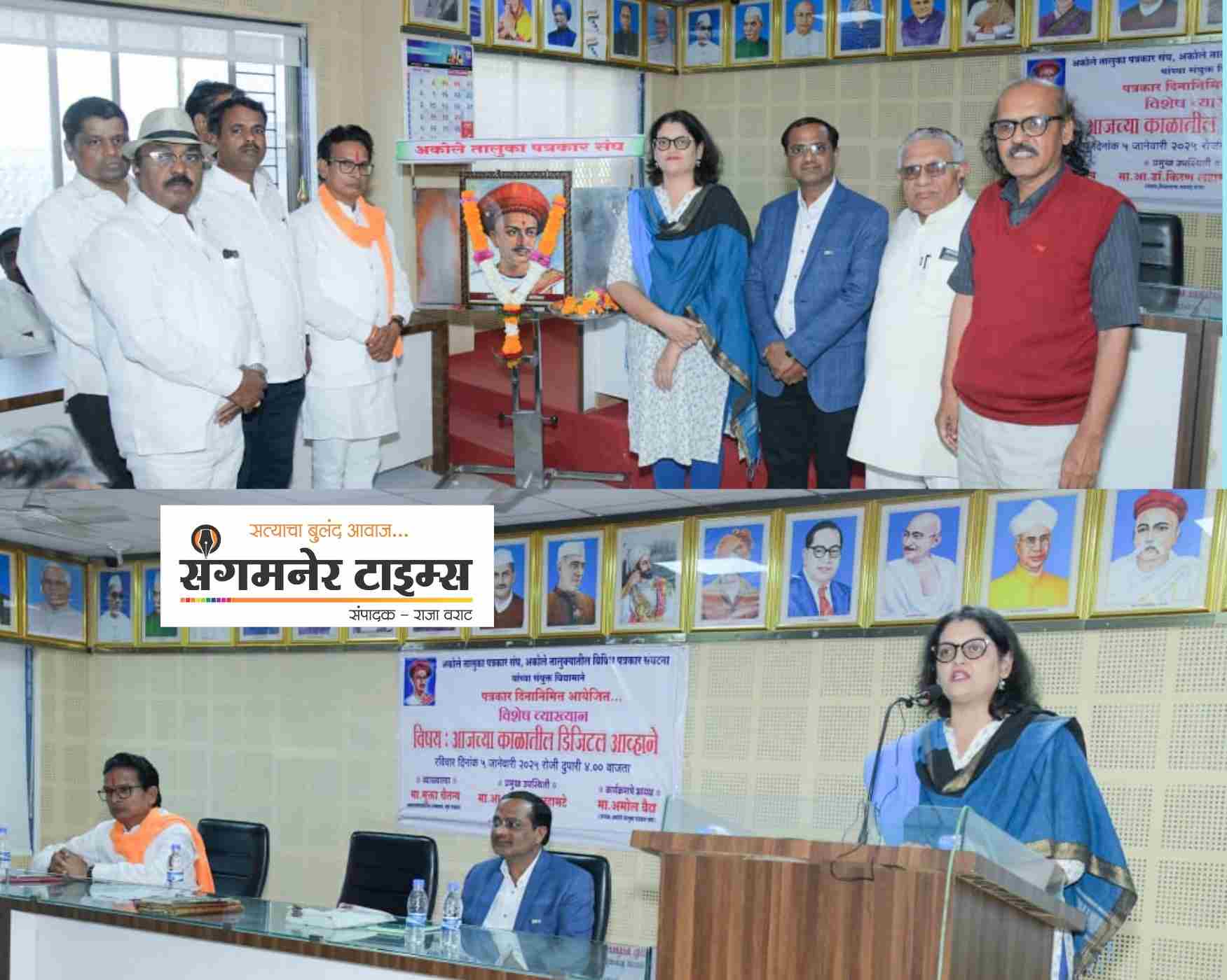 अकोले तालुका पत्रकार संघ व तालुक्यातील विविध पत्रकार संघटनांच्या वतीने पत्रकार दिनाच्या निमित्ताने अकोले पंचायत समिती सभागृह येथे “आजच्या डिजिटल मीडियातील आव्हाने” या विषयावर मुक्ता चैतन्य बोलत होत्या. कार्यक्रमाचे अध्यक्षस्थानी अकोले तालुका पत्रकार संघाचे अध्यक्ष अमोल वैद्य होते. प्रमुख अतिथी म्हणून आमदार डॉ. किरण लहामटे, पत्रकार भाऊसाहेब मंडलिक, प्रकाश टाकळकर उपस्थित होते.