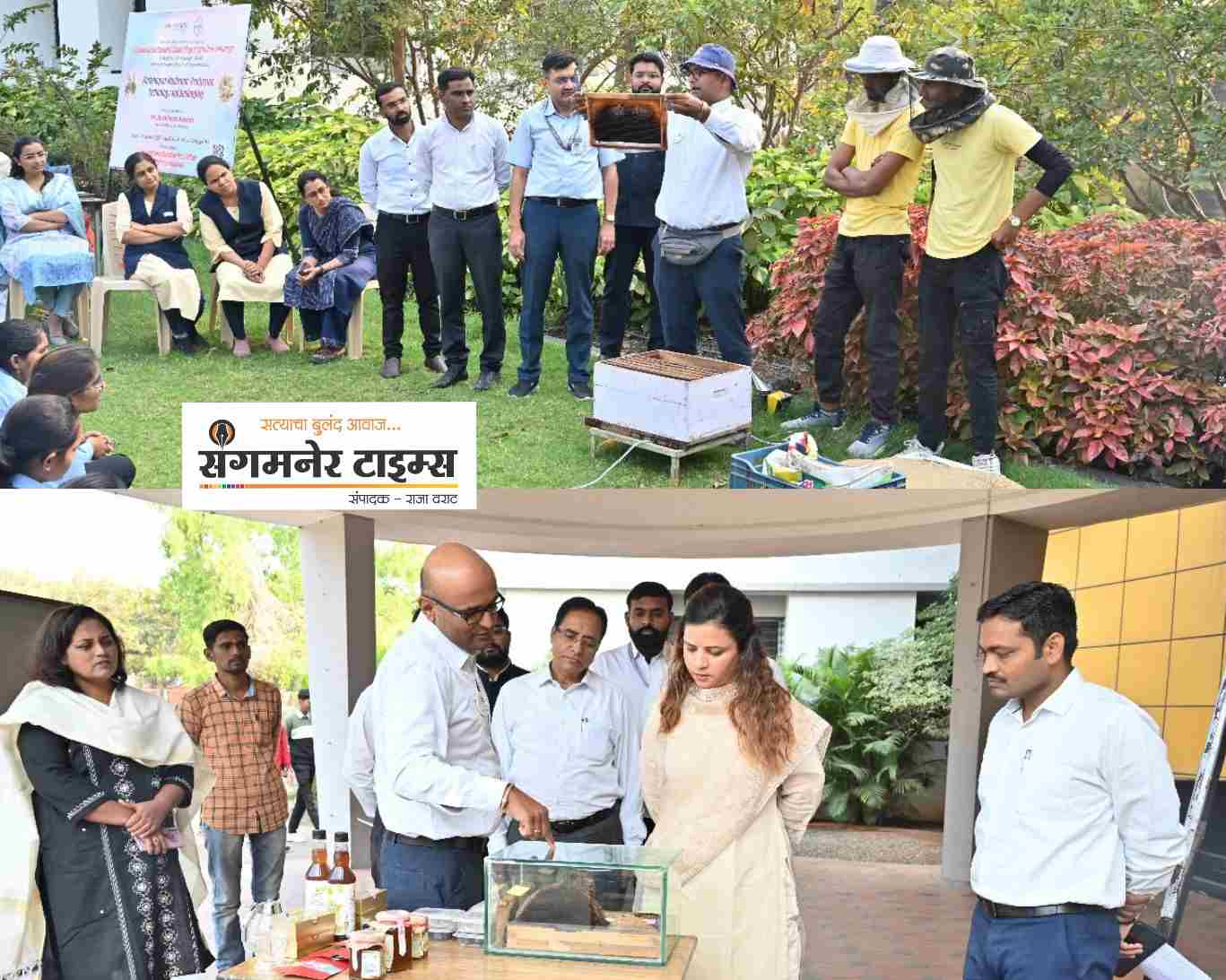 याचबरोबर मधुमाशीच्या विविध जाती मधापासून बनणारे विविध पदार्थ याबाबतही त्यांनी माहिती दिली. तर शरयूताई देशमुख म्हणाल्या की, संगमनेर तालुक्यात, डाळिंब उत्पादनासह दुग्ध व्यवसाय आणि कुक्कुट पालन व्यवसाय हा मोठा जोड व्यवसाय झाला आहे. आता नव्याने आळंबी उत्पादन यामध्येही अनेक शेतकरी आले आहेत मधुमक्खी पालनातून तरुणांसाठी व्यवसायाची संधी आहे.