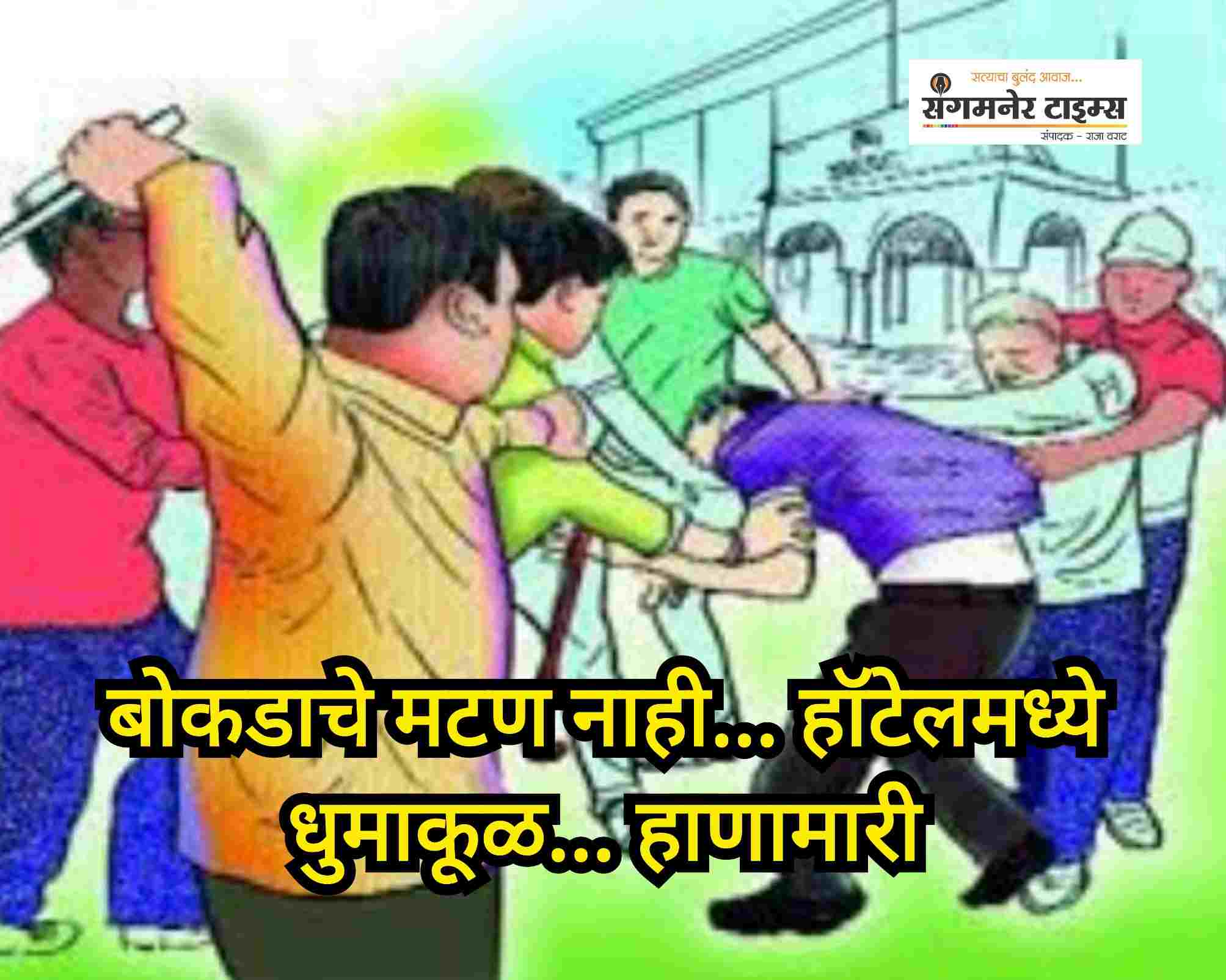 संगमनेर तालुक्यातील पठार भागात असणाऱ्या साकूर येथील हॉटेल आसरा या ठिकाणी संगमनेर तालुक्यातीलच अंभोरे गावातून आदिनाथ तुकाराम मोरे (वय 24 वर्ष, धंदा मजुरी, रा. अंभोरे तालुका संगमनेर) हे आपला मित्र केतन याच्या समवेत आसरा हॉटेलमध्ये मटणाचे जेवण करण्यासाठी गेले असता मटणाचे पीस हे बोकडाचे नसल्याचे संशय आला व त्यामुळे मित्राला उलट्या झाल्या. या कारणावरून हॉटेल मालकाला विचारले असता हॉटेल मालक अजिज सय्यद उर्फ पिंटू मामा व अश्रफ सय्यद (दोघे रा. साकुर) यांना राग येऊन जातीवाचक शिवीगाळ करीत मारून टाकण्याची धमकी दिल्याचा फिर्यादीवरून पोलिसांनी गुन्हा दाखल केला आहे.