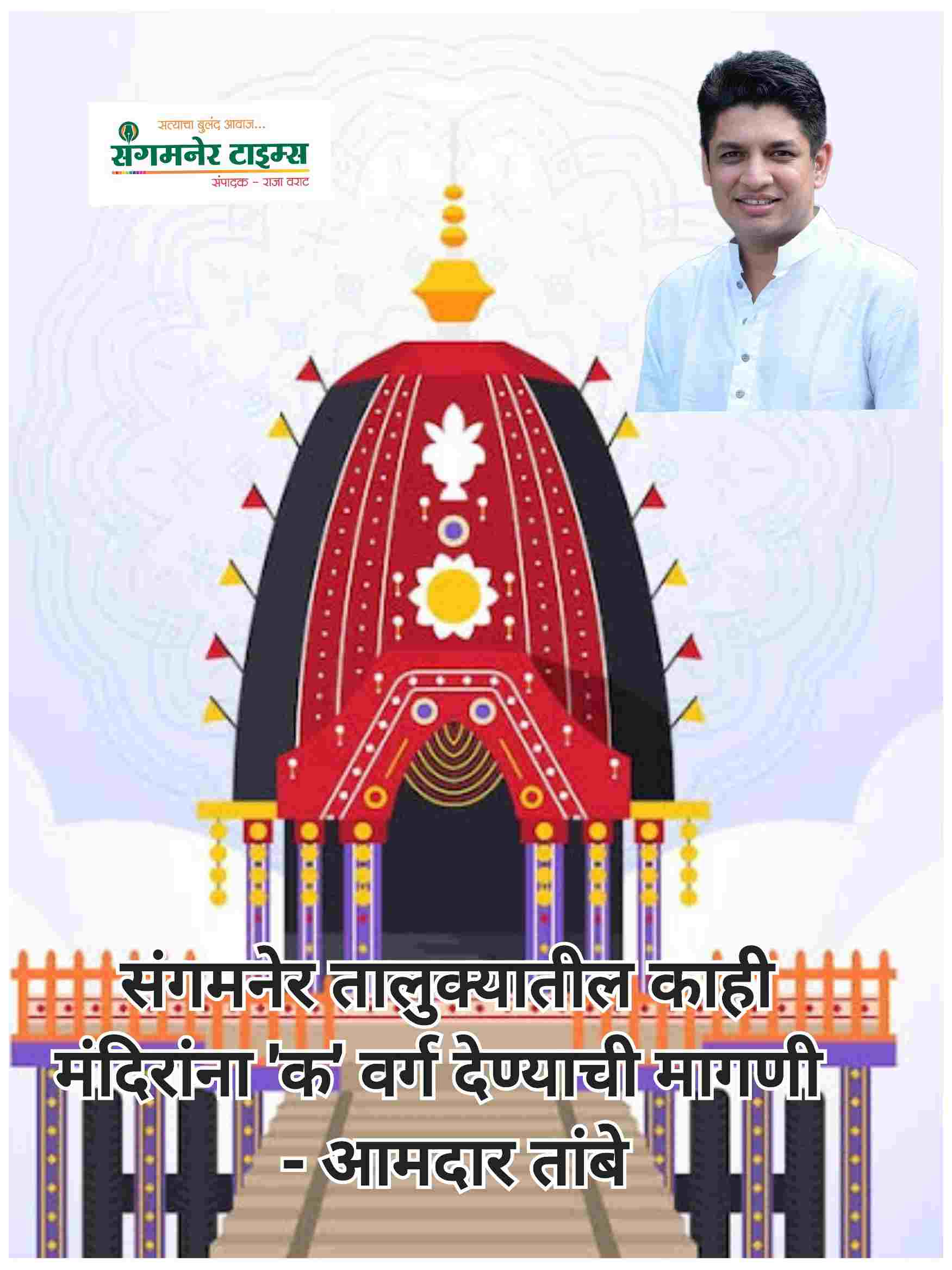 आमदार तांबे यांनी पत्राद्वारे जिल्हाधिकारी यांच्याकडे ही मागणी केली आहे. यामध्ये म्हटले आहे की, भाविकांचे श्रद्धास्थान असलेल्या मालदाड येथील श्री.क्षेत्र चैतन्य मच्छिंद्रनाथ मठ देवस्थान, आश्वी बुद्रुक येथील श्री.चैतन्य महाराज देवस्थान, खळी येथील खंडोबा महाराज देवस्थान, निळवंडे येथील दत्त महाराज देवस्थान या चार तीर्थक्षेत्रांना क दर्जा मंजूर करावा अशी मागणी केली. निळवंडे येथील डोंगरावर असलेल्या देवस्थान दत्त महाराज चैतन्य कानिफनाथ ‘क’ वर्ग तीर्थक्षेत्राचा दर्जा योजनेतून सुशोभीकरण करण्यात येणार आहे.