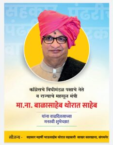 बाळासाहेब थोरात साहेबांना वाढदिवसाच्या हार्दिक शुभेच्छा…