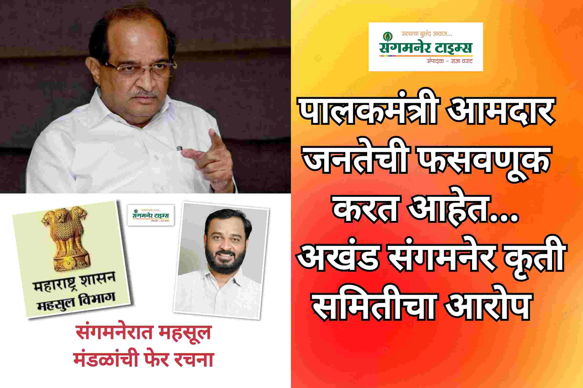 आश्वी बुद्रुक अप्पर तहसील कार्यालयावरून संगमनेर मध्ये वातावरण तापलेले आहे, जनतेचा राग बघितल्यानंतर पालकमंत्री आणि आमदार महोदय महसुली मंडळांच्या फेररचनेची खोटी माहिती जनतेला देत आहेत. महसुली मंडळाची फेररचना हा राज्याच्या महसूल विभागाचा धोरणात्मक निर्णय असतो, संगमनेर बाबतीत असा कोणताही निर्णय महसूल विभागाने अद्याप पर्यंत घेतलेला नाही. असा काही निर्णय झाला असेल तर राज्याच्या महसूल विभागाचा तसा आदेश कागदपत्रासह जनतेला दाखवा असे असे थेट आव्हानच अखंड संगमनेर कृती समितीचे अध्यक्ष भाऊराव राणे यांनी दिले आहे.