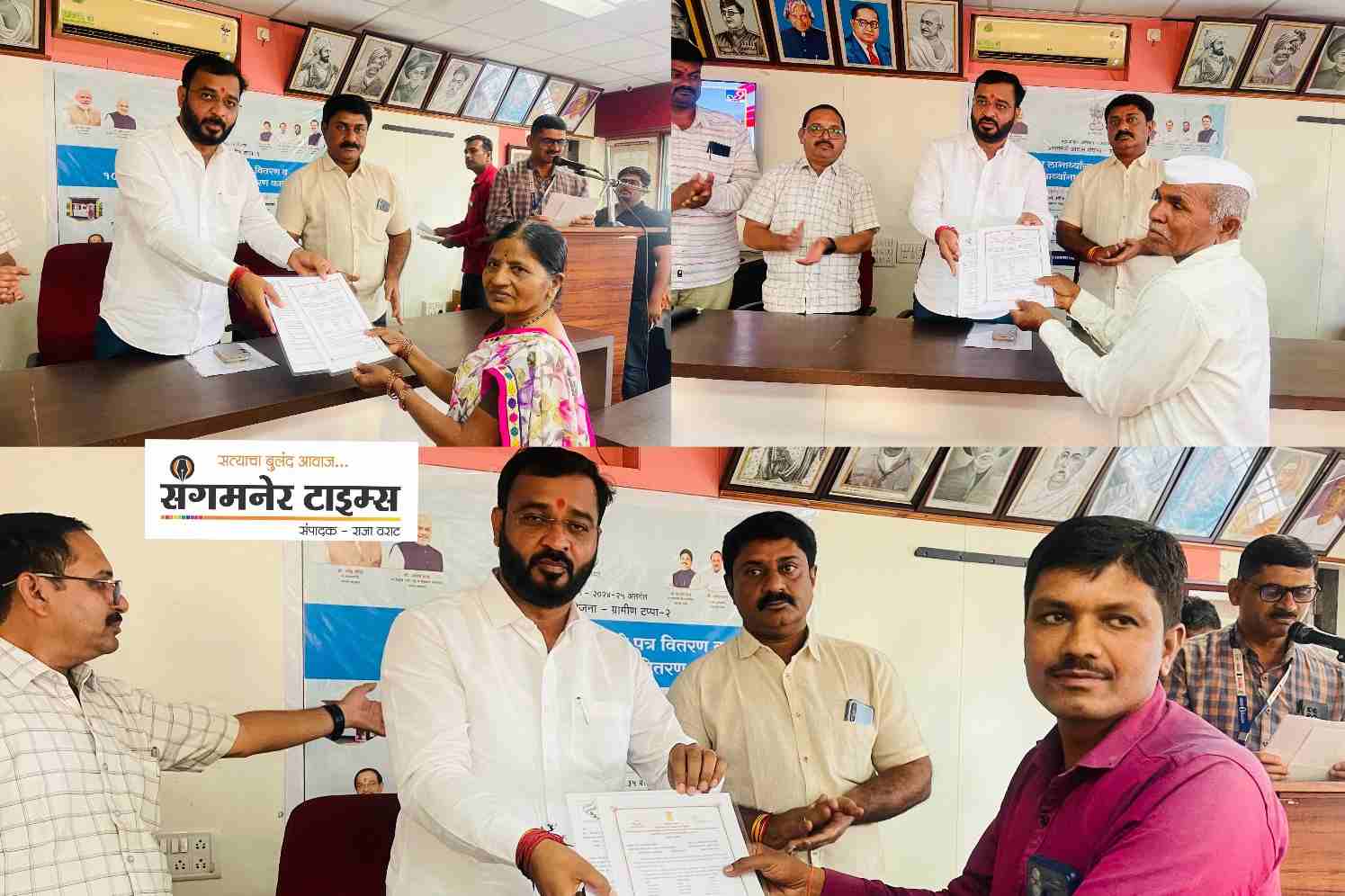 संगमनेर पंचायत समिती सभागृहात तालुक्यातील ७ हजार १४५ लाभार्थ्यांना घरकुल लाभार्थ्यांच्या बँक खात्यावर पहिला हप्ता ऑनलाइन जमा करण्यात आला असल्याचे प्रमाणपत्र लाभार्थ्यांना खताळ यांच्या हस्ते देण्यात आले. त्यावेळी आयोजित कार्यक्रमात ते बोलत होते. व्यासपीठावरसंगमनेर पंचायत समितीचे सहाय्यक गटविकास अधिकारी राजेंद्र ठाकूर, तालुका आरोग्य अधिकारी डॉ. सुरेश घोलप रोहिदास गुंजाळ, गणेश गुंजाळ, लघुपाटबंधारे विभाग उप अभियंता हितेंद्र गव्हाळे, कृषीअधिकारी वाळीबा उघडे व रामराव कडलग, विस्तार अधिकारी मदन शेवाळे, राजेंद्र कासार, काशिनाथ सरोदे, सदानंद डोखे, भाग्यश्री शेळके आदी उपस्थित होते.