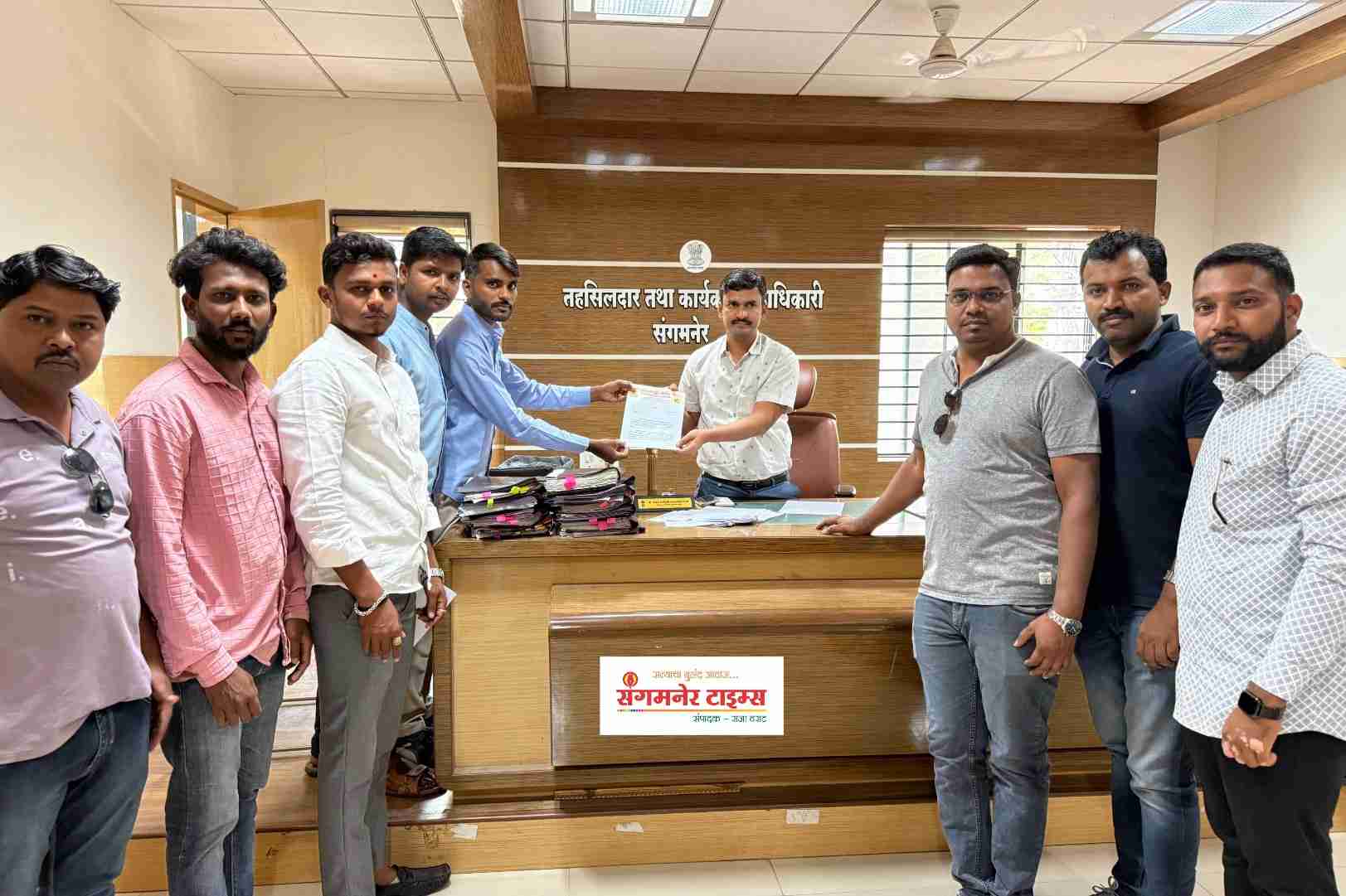 संगमनेरचे तहसीलदार धीरज नांद्रे मांजरे यांना निवेदन देताना संभाजी ब्रिगेडचे तालुका अध्यक्ष राम अरगडे तसेच अमोल शेलकर, मोहसीन शेख, अनिकेत घुले, शुभम आव्हाड, रोशन गोफणे, आदिल रूपवते, योगेश गायकवाड, प्रथमेश बालोडे, रोहित गुंजाळ आदी उपस्थित होते.