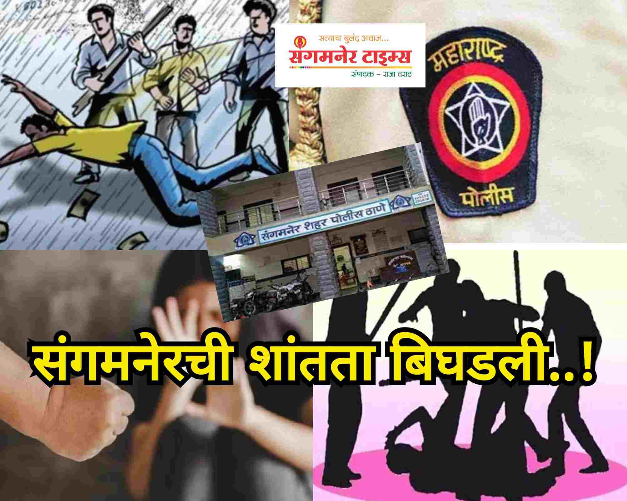 शांतता आणि संस्कृती ही संगमनेर शहरासह तालुक्याची ओळख होती. मात्र काही महिन्यांपासून ही शांतता, संस्कृती, कायदा व्यवस्था पूर्णपणे बिघडत चालले असून शहरांमध्ये धार्मिक तेढ निर्माण करणे, वाढती अतिक्रमणे, बेशिस्त वाहतूक व्यवस्था, जातीयवाद, धार्मिक तेढ वाढवणे, सामाजिक अशांतता निर्माण करणे, अवैध धंदे करणाऱ्यांची दादागिरी, सर्वसामान्यांना मारहाण, हाणामाऱ्या हप्तेखोरीने धुमाकूळ घातल्याचे चित्र दिसत आहे.