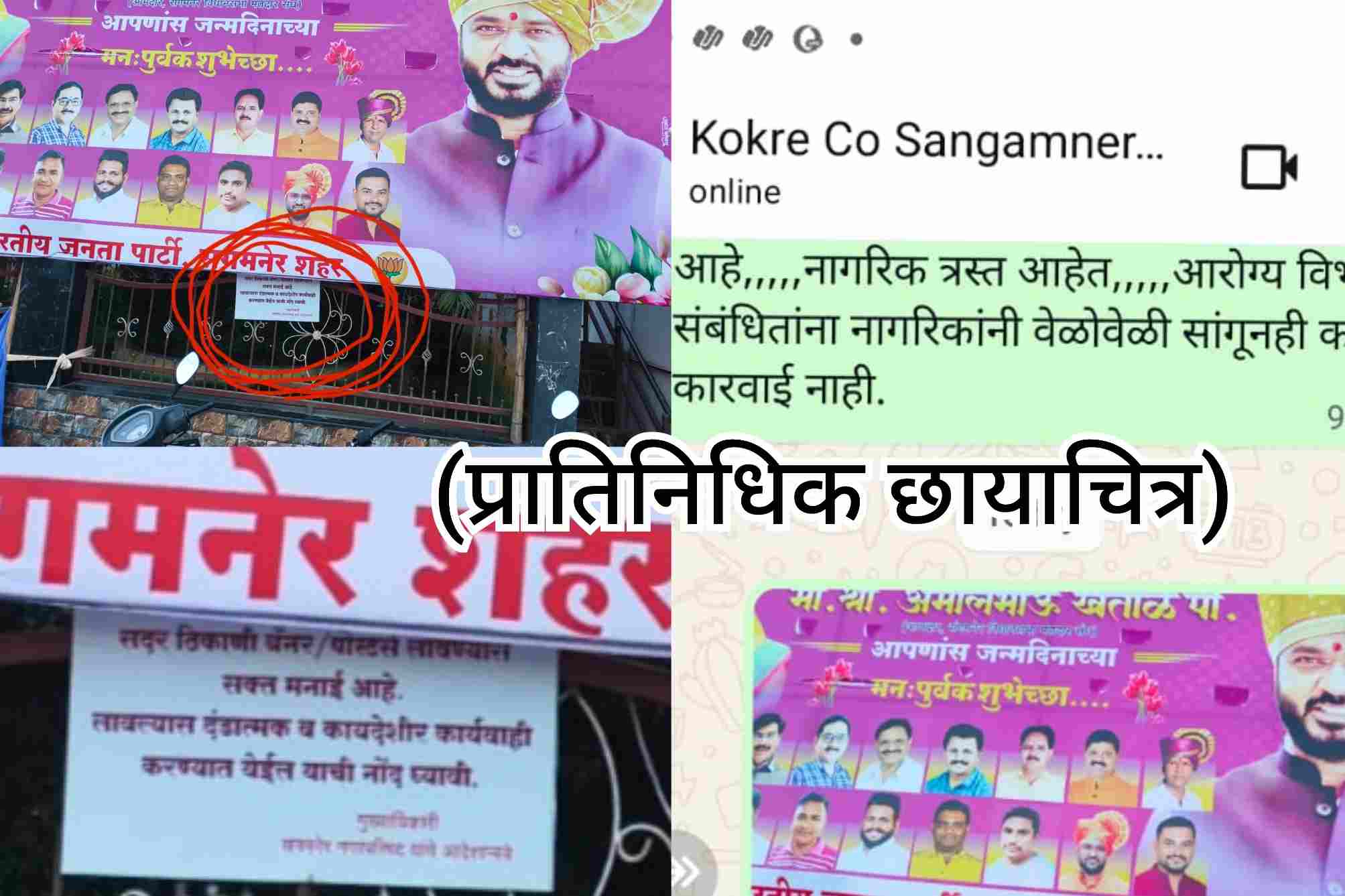 संगमनेर शहरात अगदी मोक्याच्या ठिकाणी नगरपालिकेच्या सार्वजनिक जागांवर विविध राजकीय पक्षांसह इतर खासगी व्यावसायिक आणि व्यापारी जाहिरातींचे फ्लेक्स बोर्ड, बॅनर वारंवार लावण्यात येत असून नगरपालिकेने असे बॅनर लावू नये म्हणून लिहिलेला फलक देखील दुर्लक्षित करण्यात येऊन सरळ सरळ बॅनर लावले जात आहेत. विशेष म्हणजे या संदर्भातील न्यायालयाचे आदेश हे फक्त चर्चेपुरते राहिले असून आता या कायद्याने आणि न्यायालयाच्या आदेशानुसार यासाठी जबाबदार असणाऱ्या नगरपालिकेच्या कर्मचाऱ्यांवर आणि अधिकाऱ्यांवर कारवाई करावी अशी मागणी सर्वसामान्य नागरिकांमधून होत आहे.