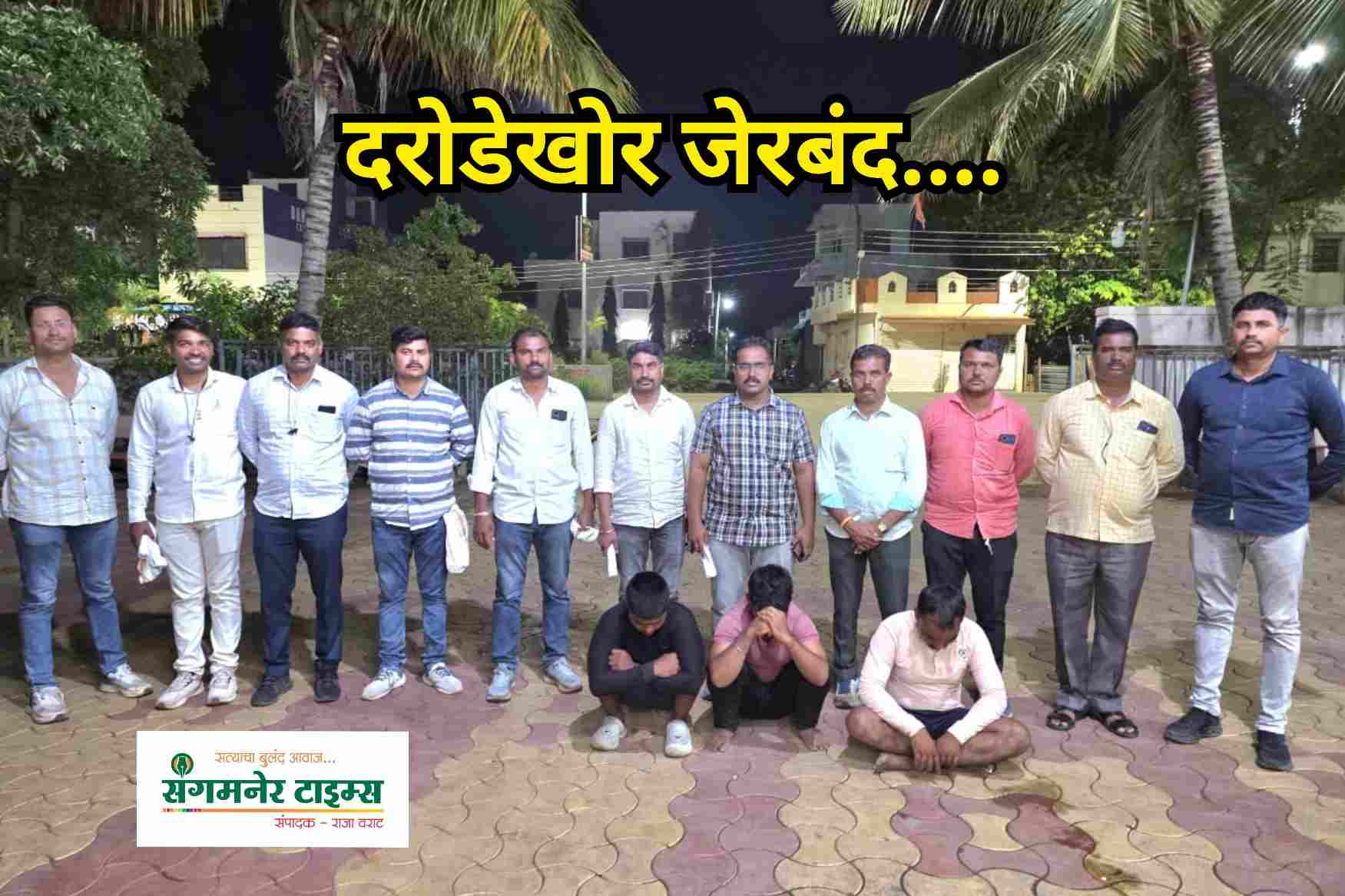 स्वस्तात सोने देण्याचे आमीष दाखवून संगमनेर तालुक्यातील व्यापाऱ्याला जामखेड तालुक्यात बोलावून लुटण्याची घटना घडली होती. या लुटमारी दरोडेखोरीत त्या व्यापाऱ्याचे दहा लाख रुपये आणि सोन्याचे दागिने लंपास करण्यात आले होते. हा दरोडा टाकणारे आरोपी स्थानिक गुन्हे साखरेच्या पथकाने जेरबंद केले असून तीन आरोपींना अटक केली आहे. तर सात आरोपीपसार झाले असल्याची माहिती देण्यात आली आहे.