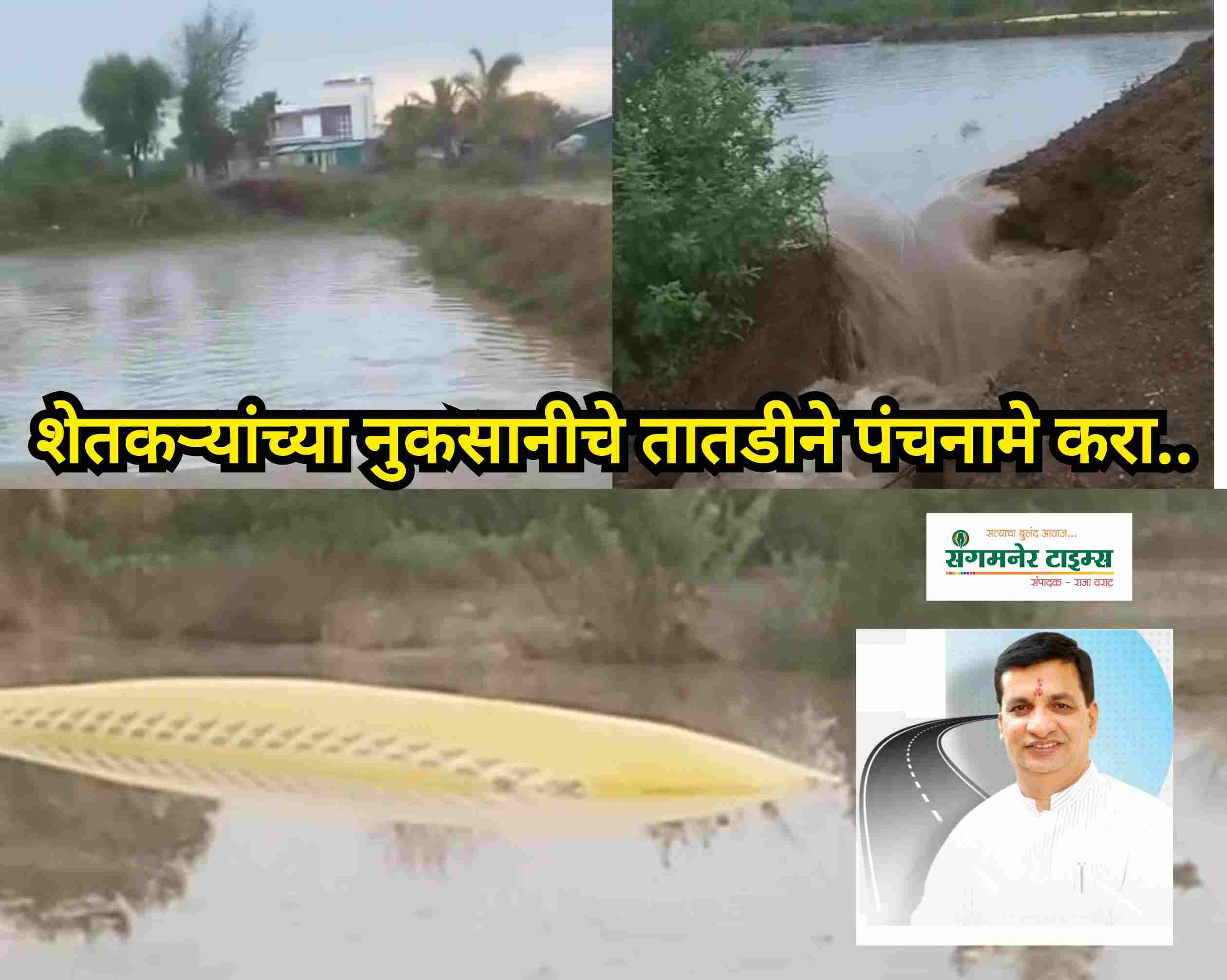 तालुक्याच्या पश्चिम भागामध्ये डाळिंब पिकाचे मोठ्या प्रमाणात उत्पादन होत असून शेतकऱ्यांनी भाजीपाल्याची लागवड केली आहे. मात्र अचानक जोरदार आलेल्या पावसाने शेतीमध्ये साठवलेले कांद्याचे सर्व डेपो पूर्णपणे वाया गेले असून भाजीपाला पिकाचे मोठे नुकसान झाले आहे. या अस्मानी संकटामध्ये सरकारने तातडीने मदत करावी अशी मागणी निमगाव भोजापूर येथील प्रगतशील शेतकरी सुनील कडलग, निमज चे उपसरपंच अरुण गुंजाळ यांनी केली आहे.