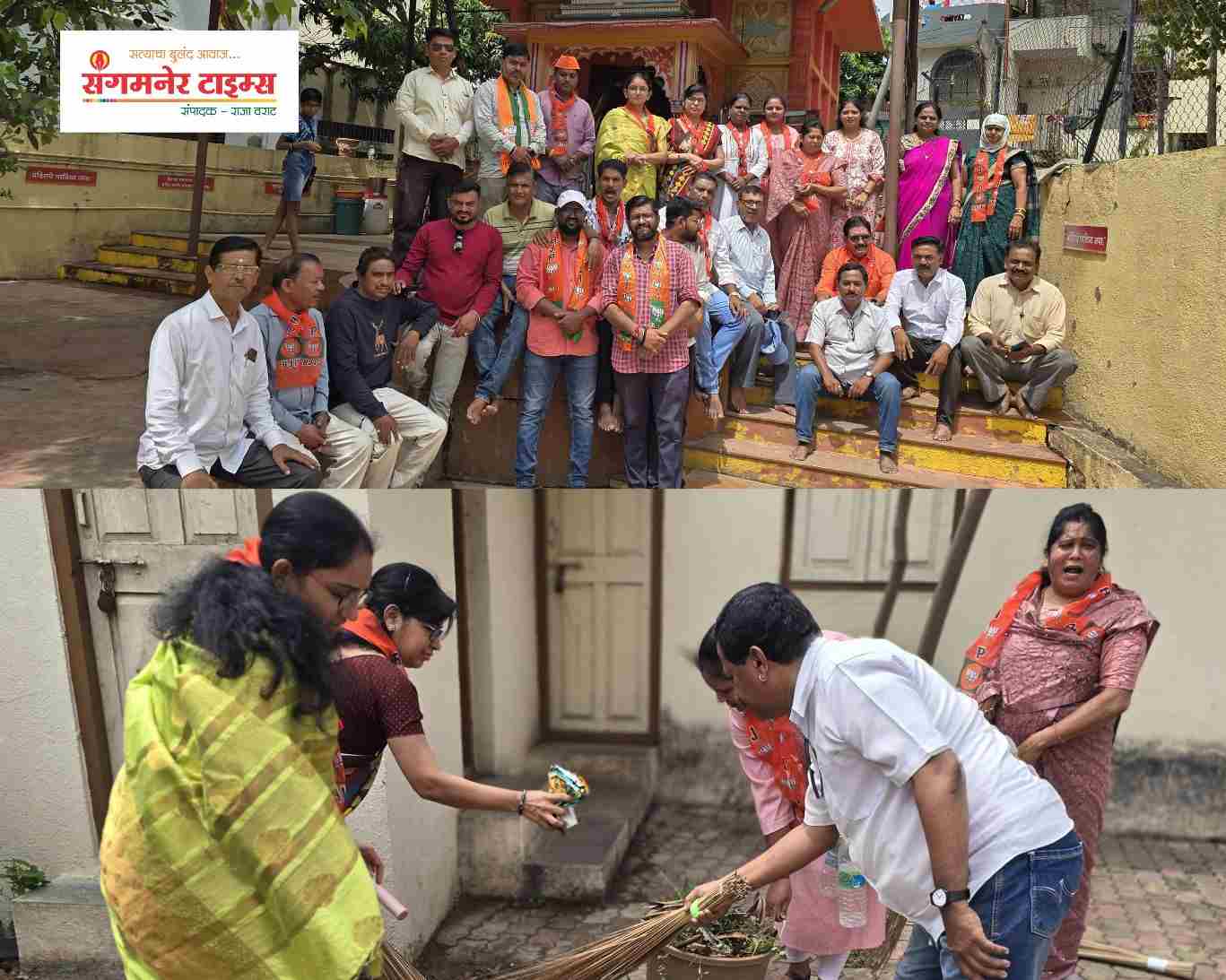 पुण्यश्लोक अहिल्यादेवी होळकर यांच्या त्रिशताब्दी ३०० वी जयंती समारोह सप्ताह निमित्त संगमनेर शहर भारतीय जनता पक्षाच्या वतीने २४ मे रोजी शहरातील गणेश नगर महादेव मंदिरात स्वच्छता अभियान राबविण्यात आले, यावेळी भारतीय जनता पार्टी संगमनेर शहर मंडलाच्या वतीने शहराध्यक्षा पायल आशिष ताजणे यांच्या समवेत सर्व पदाधिकारी व कार्यकर्त्यांनी उपस्थित राहून मंदिराची साफसफाई करून स्वच्छता अभियान राबविले व महाआरती करण्यात आली.